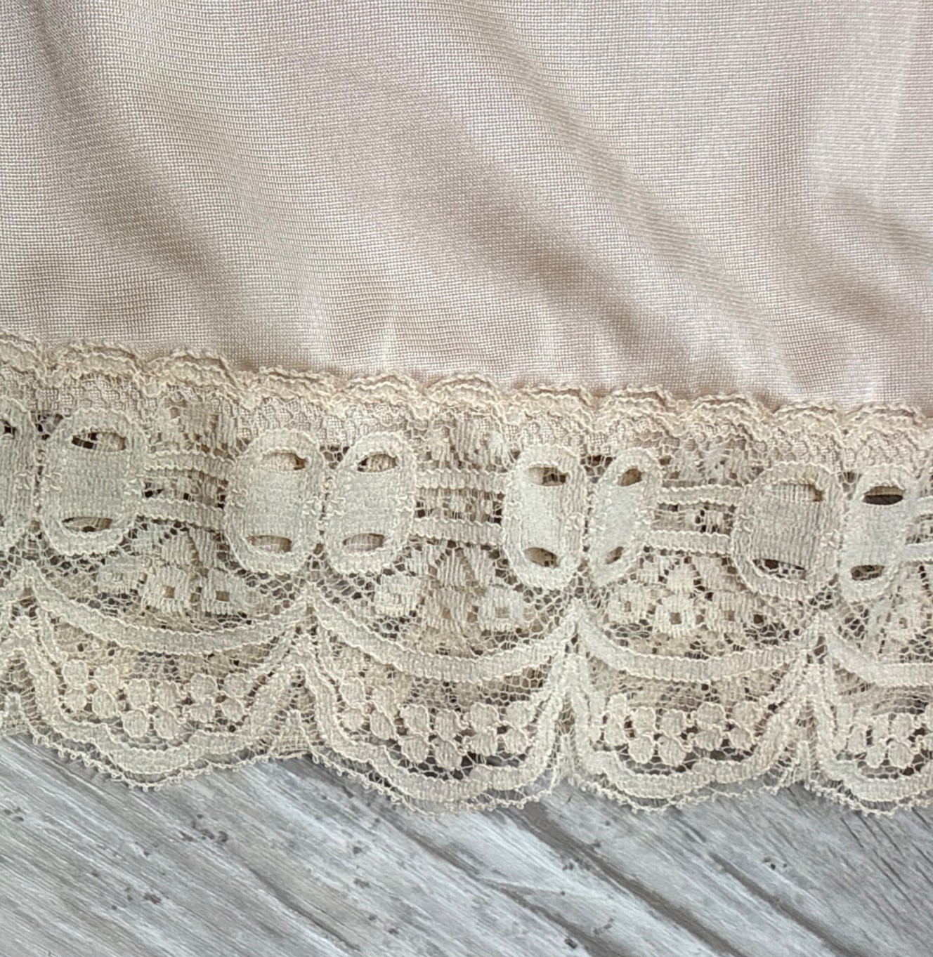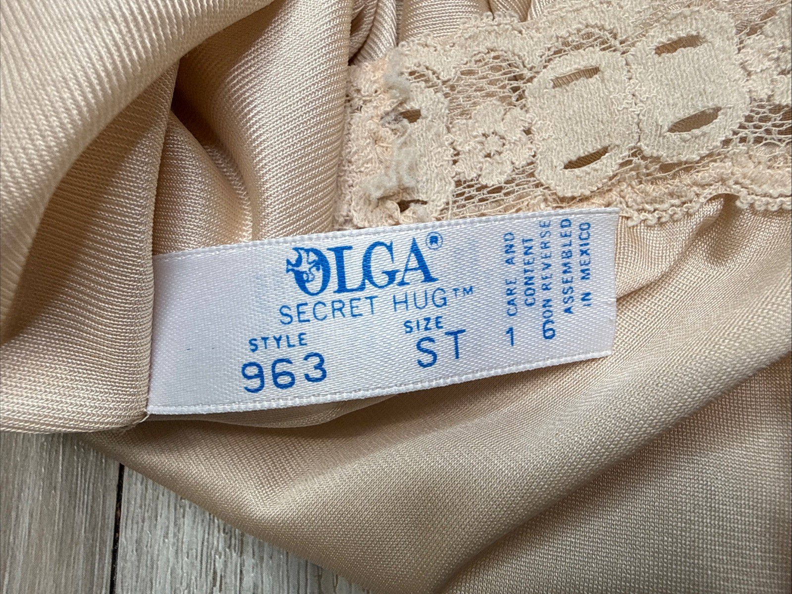 как выглядит Vtg Lingerie Olga Secret Hug Half Slip Beige Small Lace Waist And Trim Nylon фото