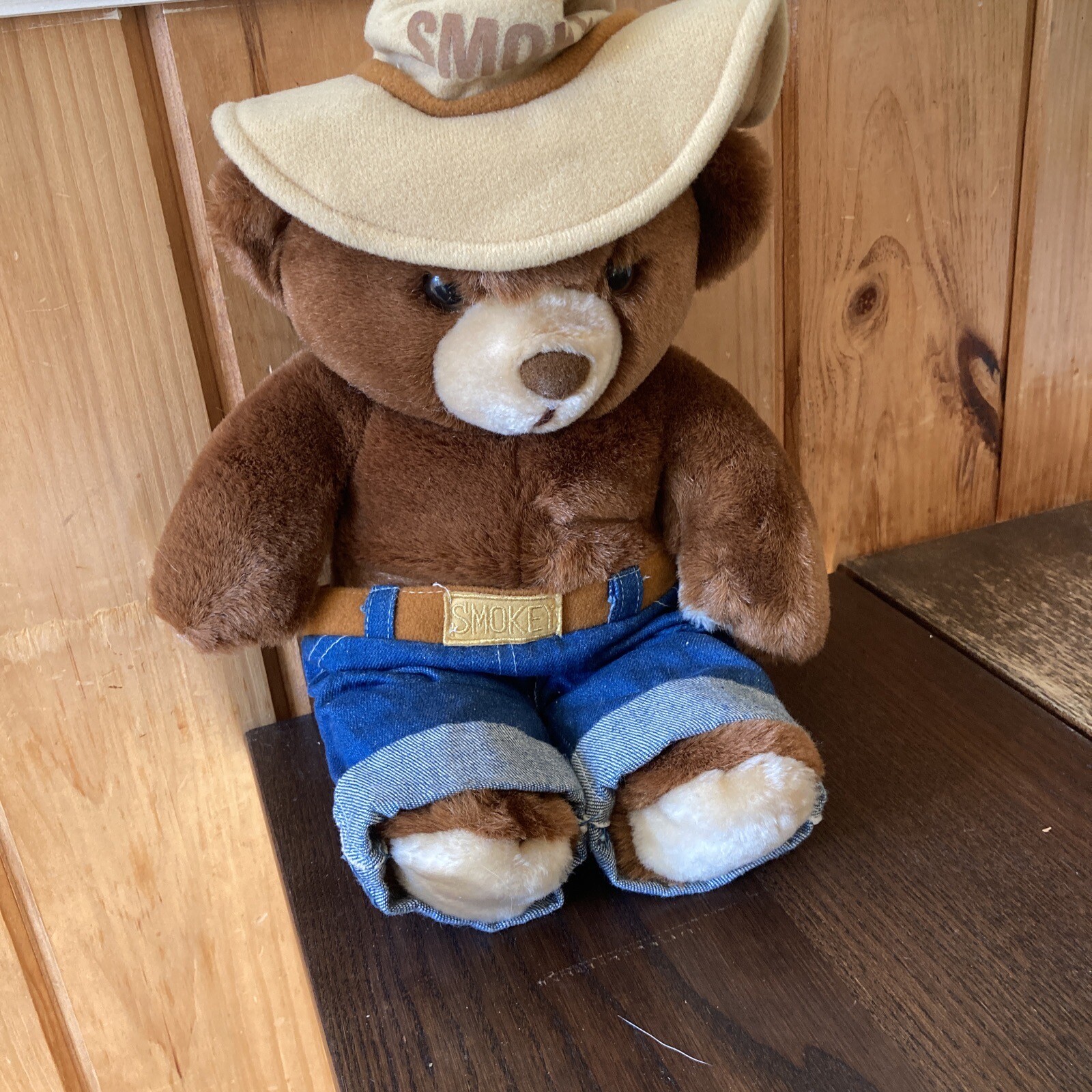 Vintage Smokey Bear Stuffed Plush Wearing Jeans Three Bears Inc 1985