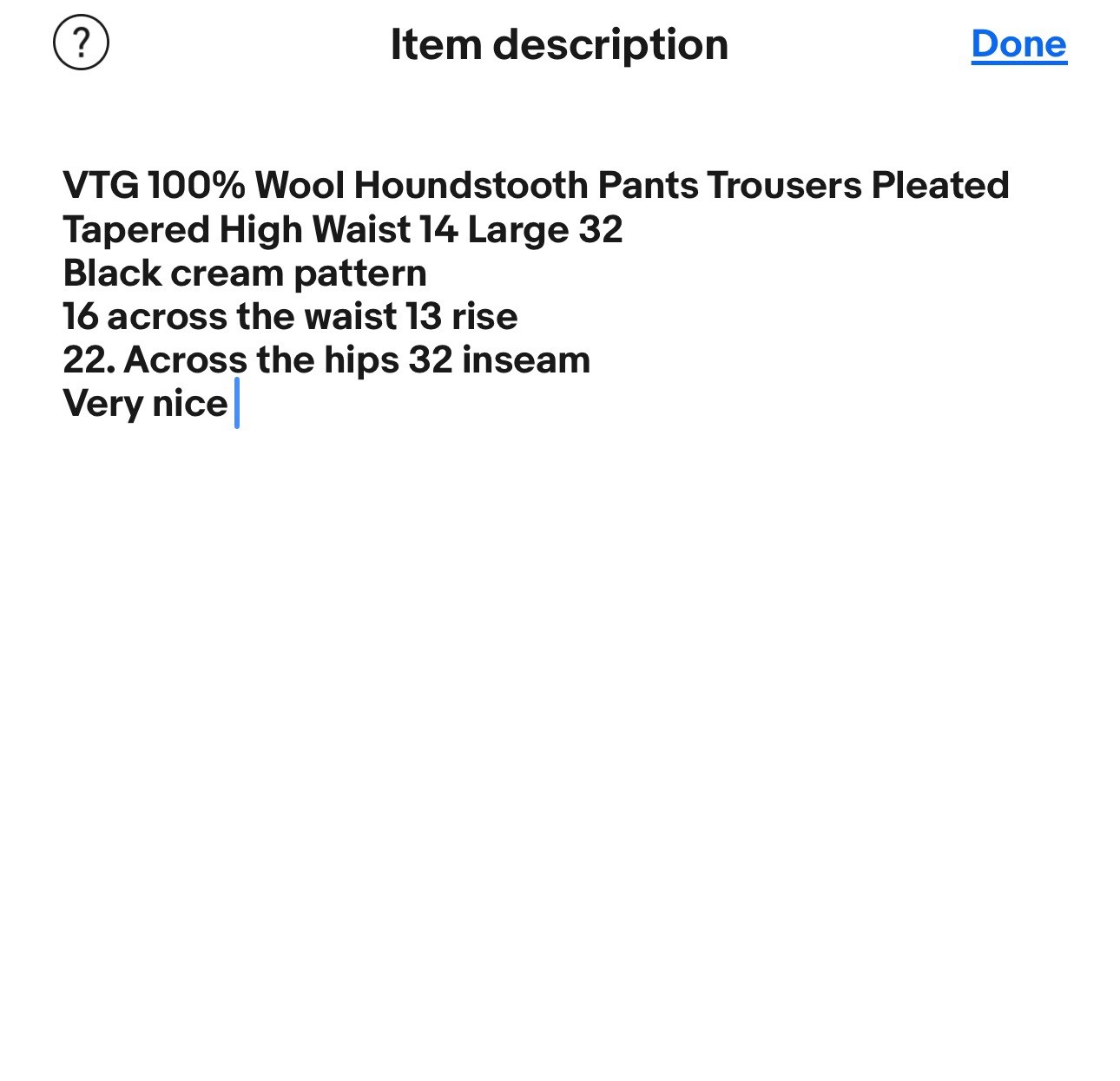 как выглядит VTG 100 Wool Houndstooth Pants Trousers Pleated Tapered High Waist 14 Large 32 фото