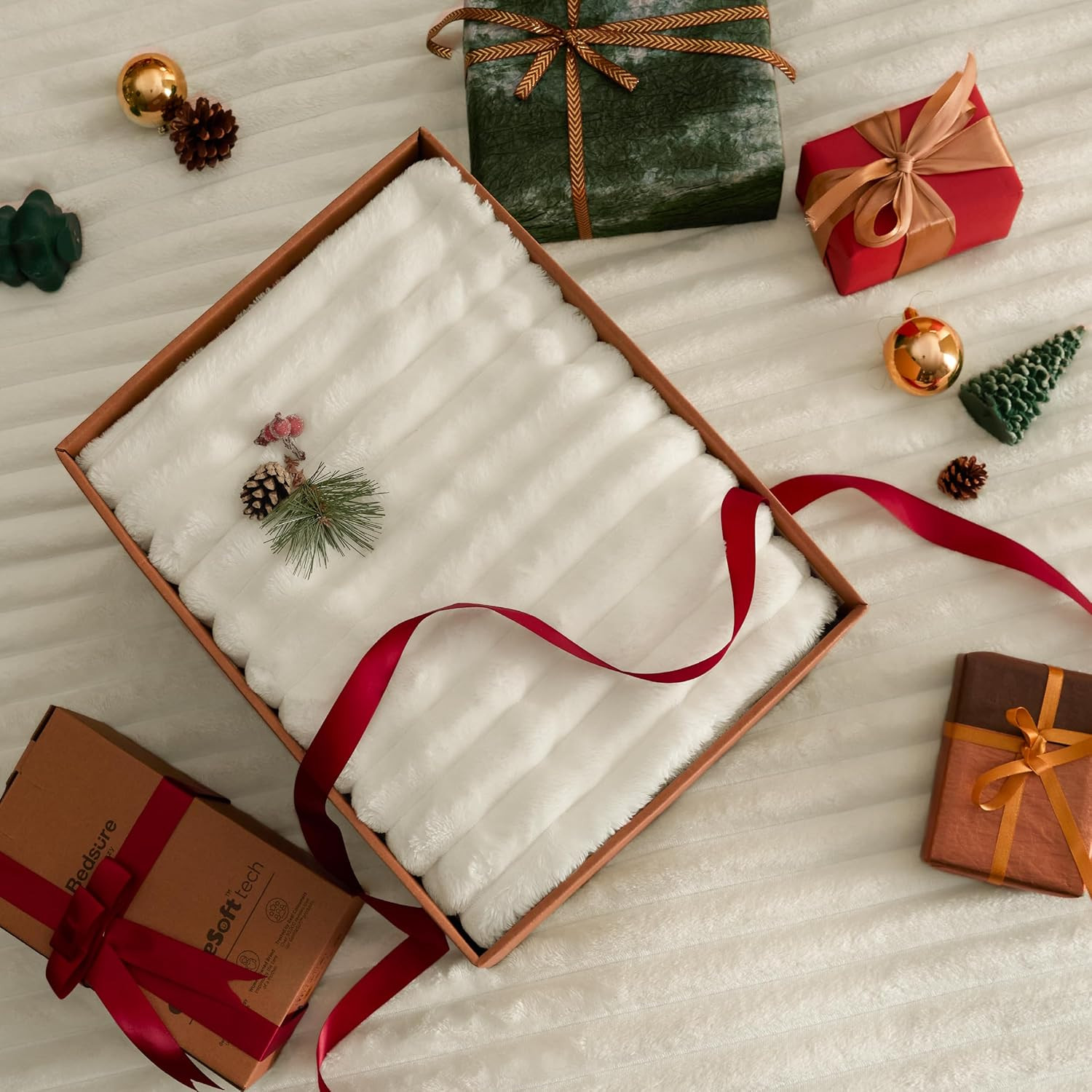 как выглядит Fluffy Comforter Set Queen - Super Soft Faux Fur Bed Set Cream White, Warm Plush фото