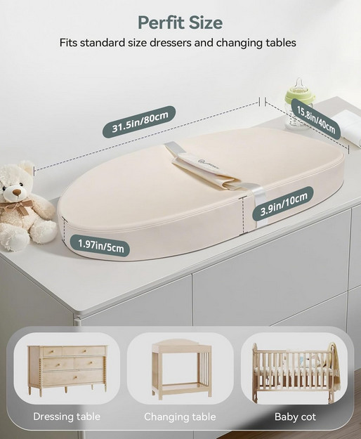 Baby Changing Pad Beige 31 x 15 Cushioned Waterproof Soft Faux Leather