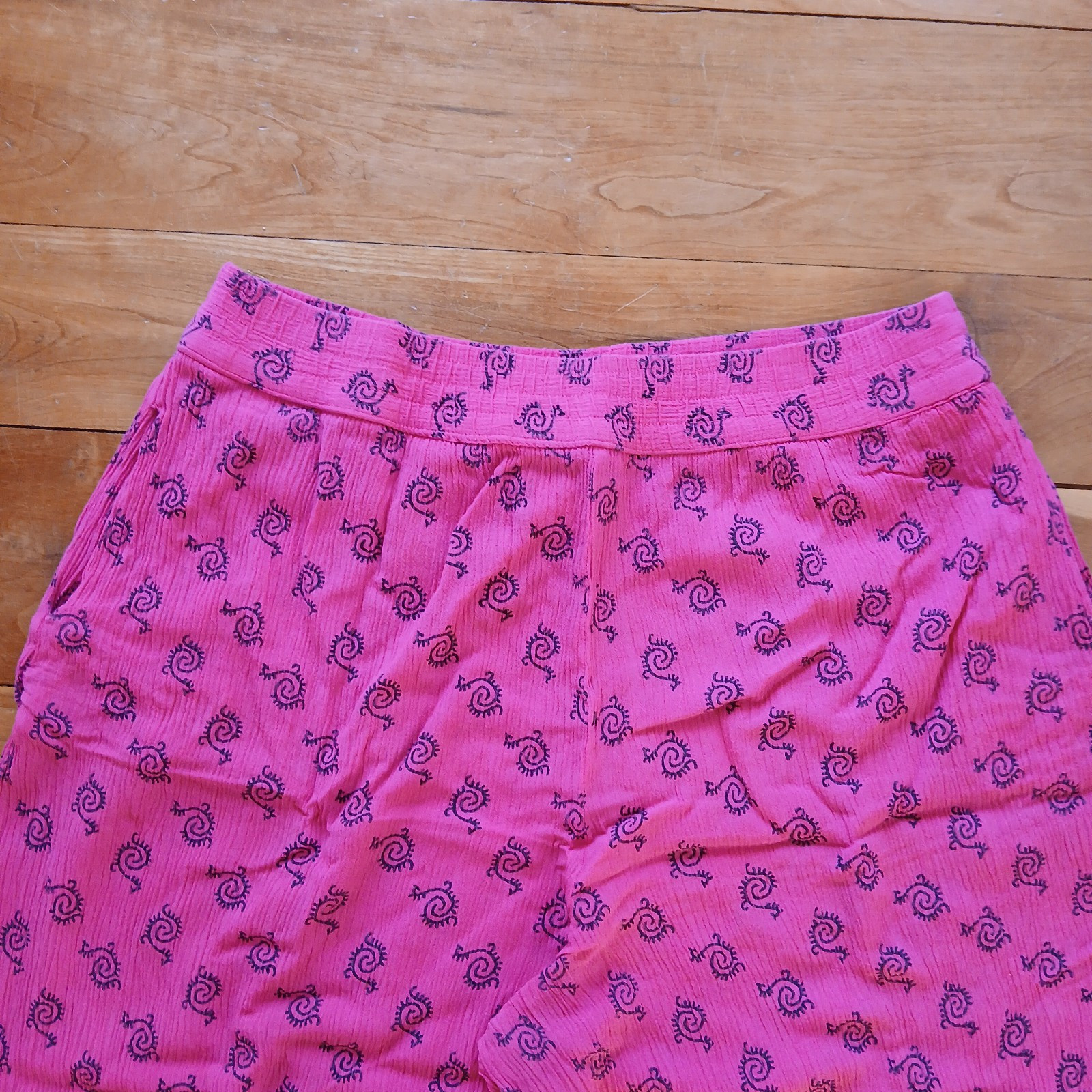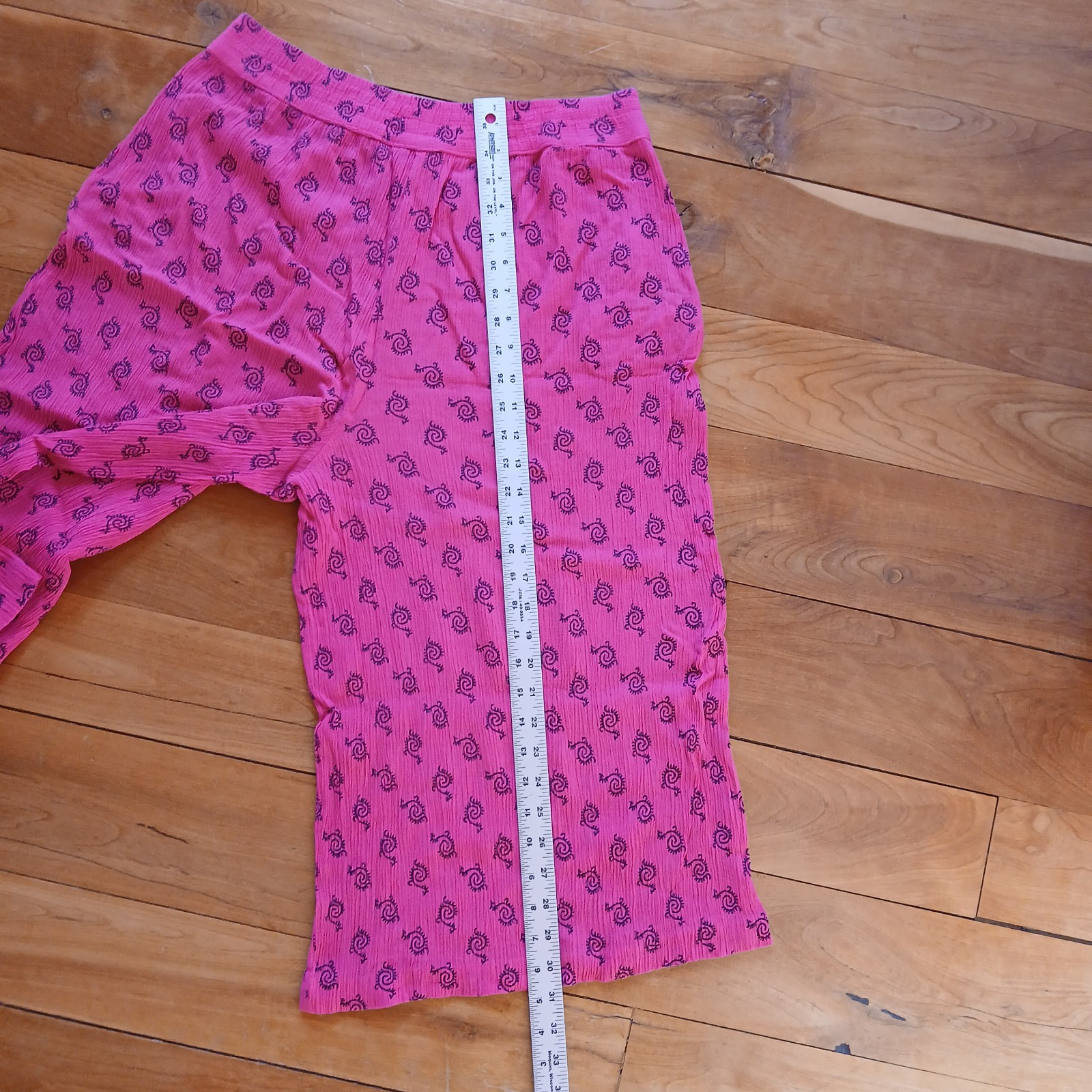 Vintage Palazzo Pants Wide Leg Cropped High Waisted Medium Pink Artsy Crinkled