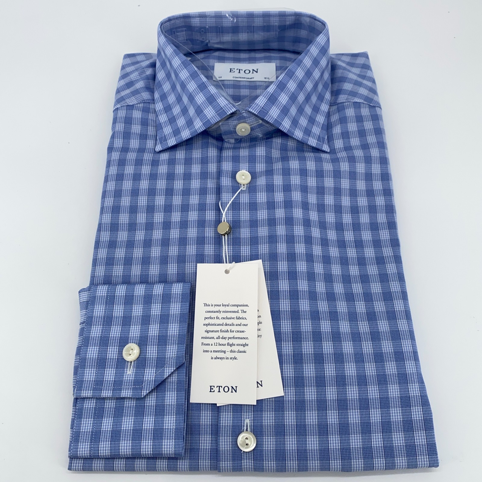Eton Dress Shirt Mens M 15 1/2 - 39 Contemporary Poplin Blue Check Button Up