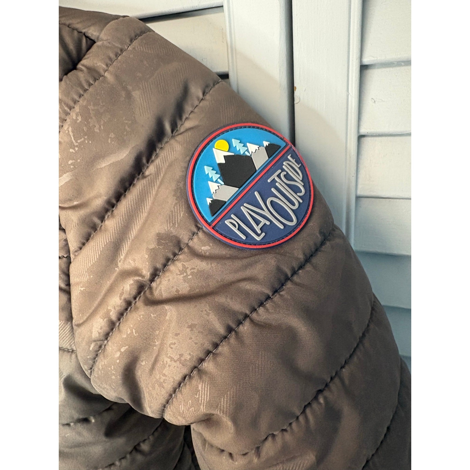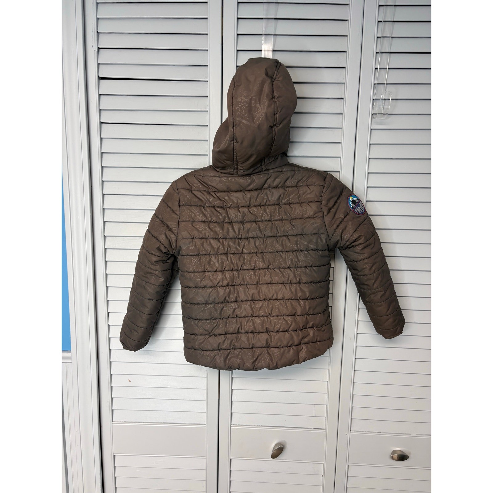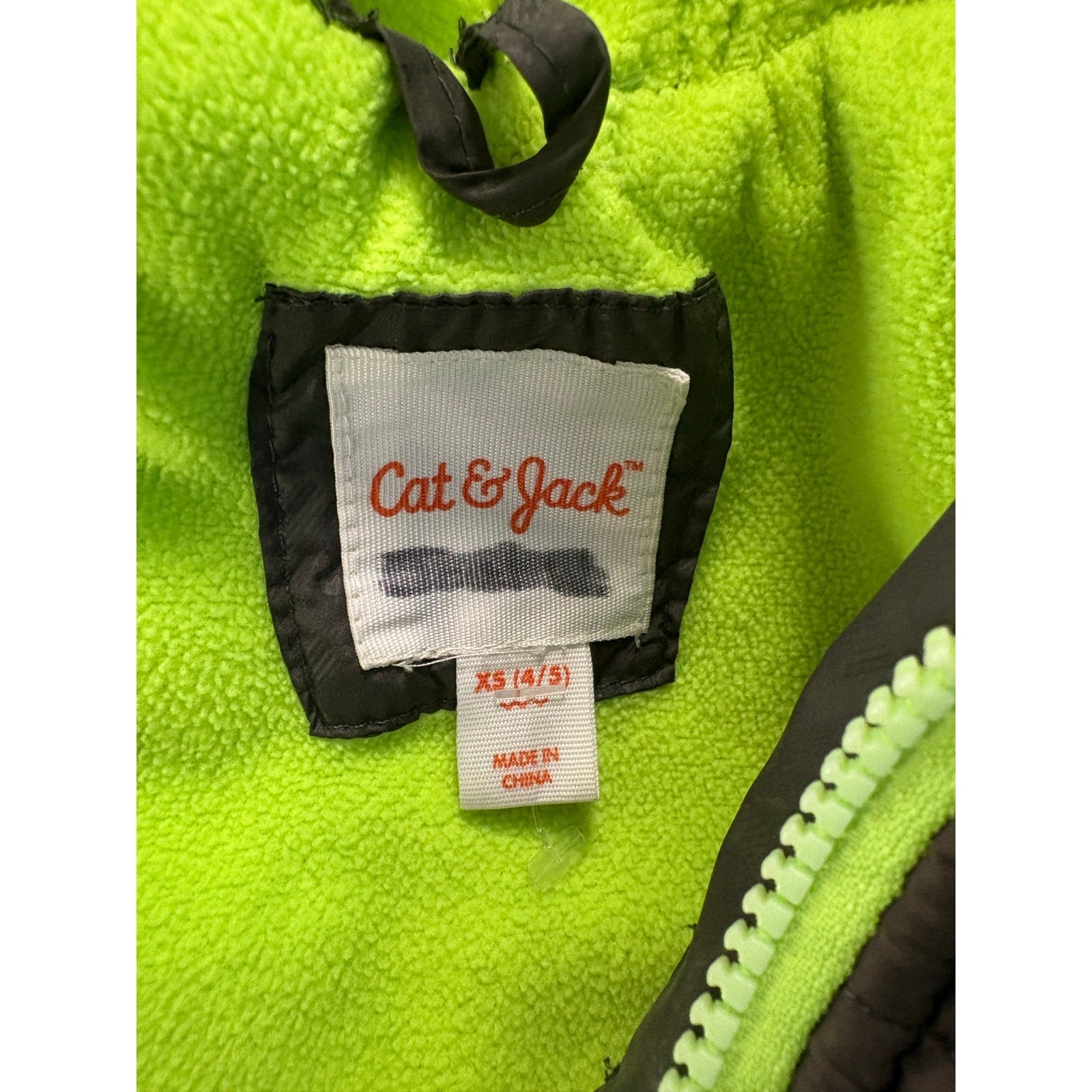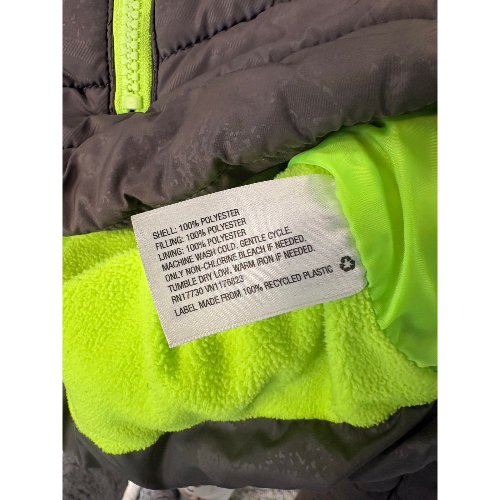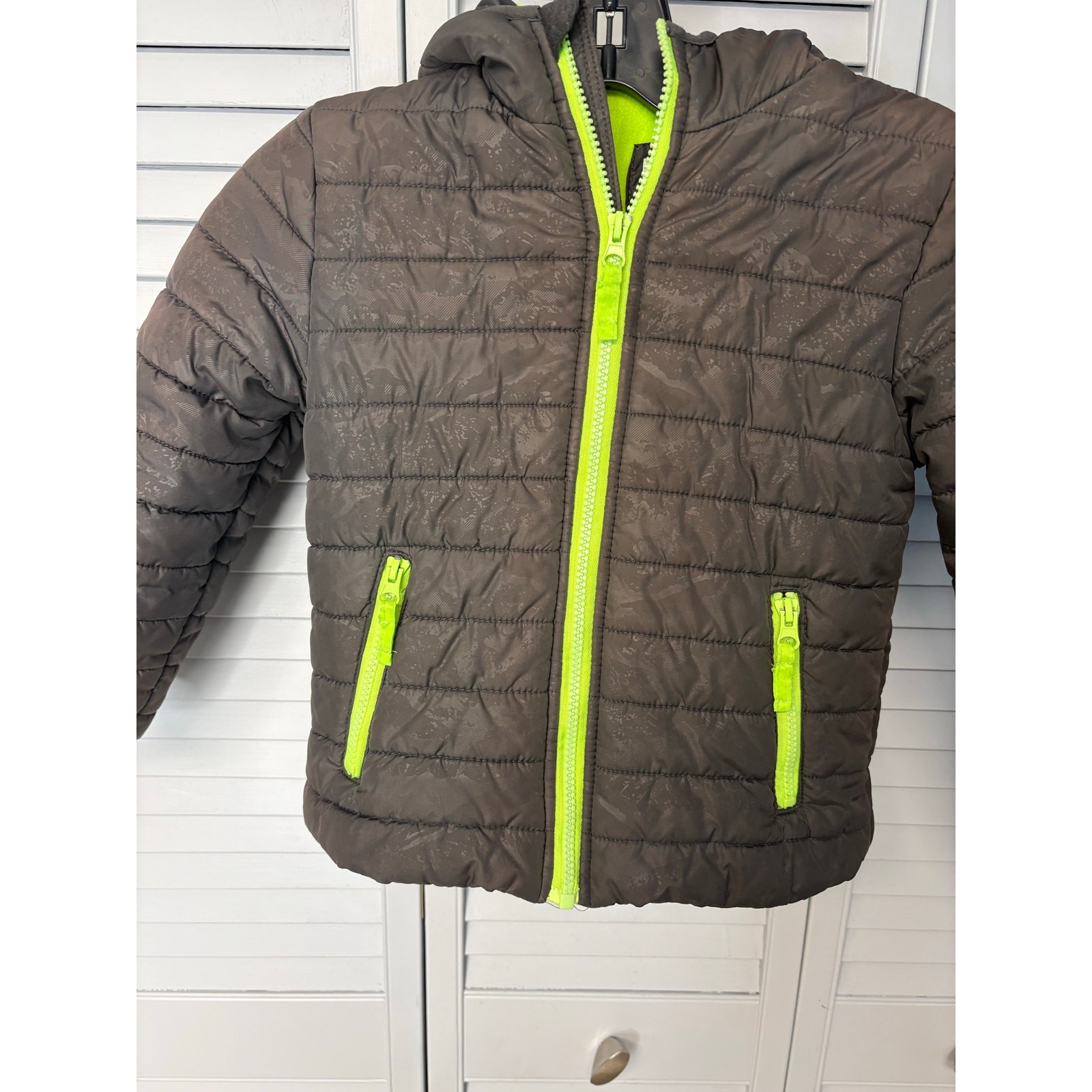 Cat Jack winter puffer jacket child toddler gray green/yellow w/ hood pocket