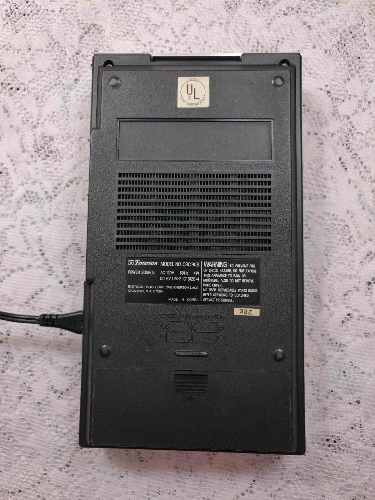 Vintage Emerson Cassette Recorder/Player - Model CRC90S FOR PARTS OR REPAIR