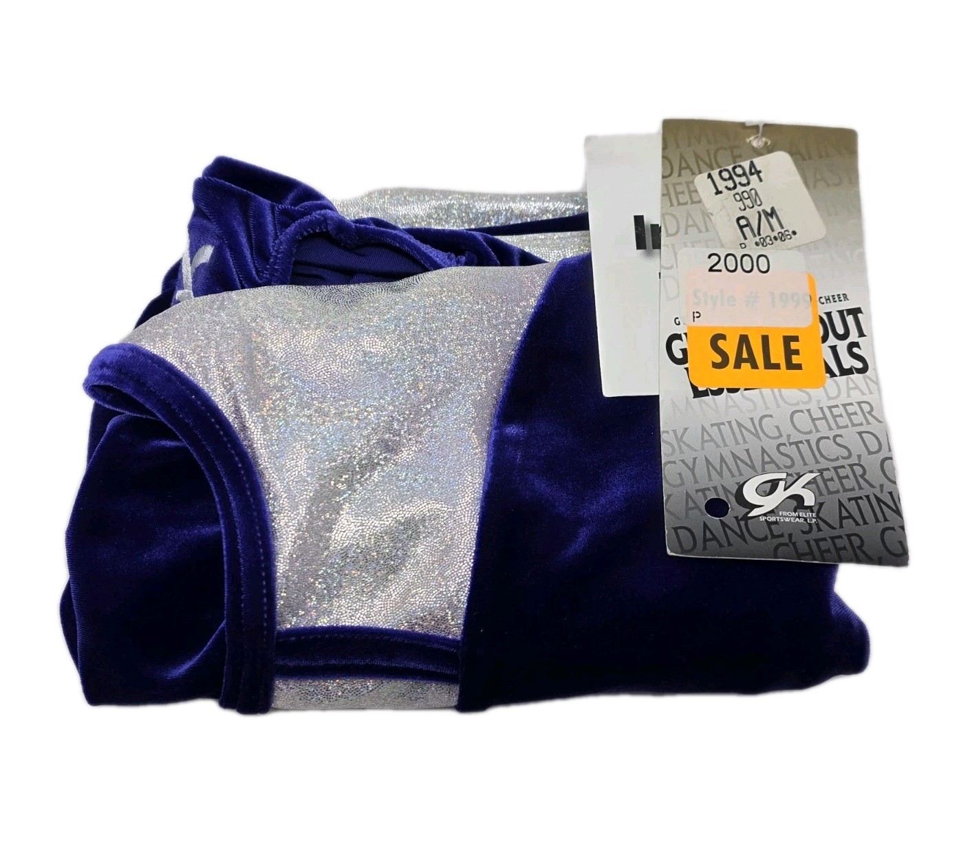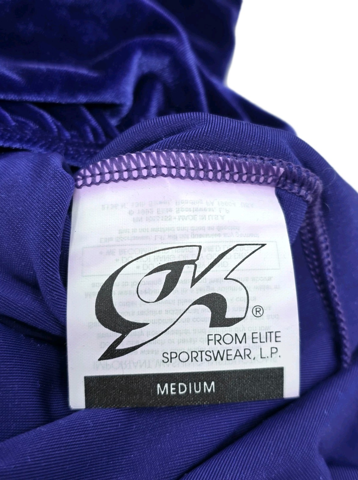GK Elite VTG Opal Metallic Blue Violet Velvet Logo Competition Leotard Size AM