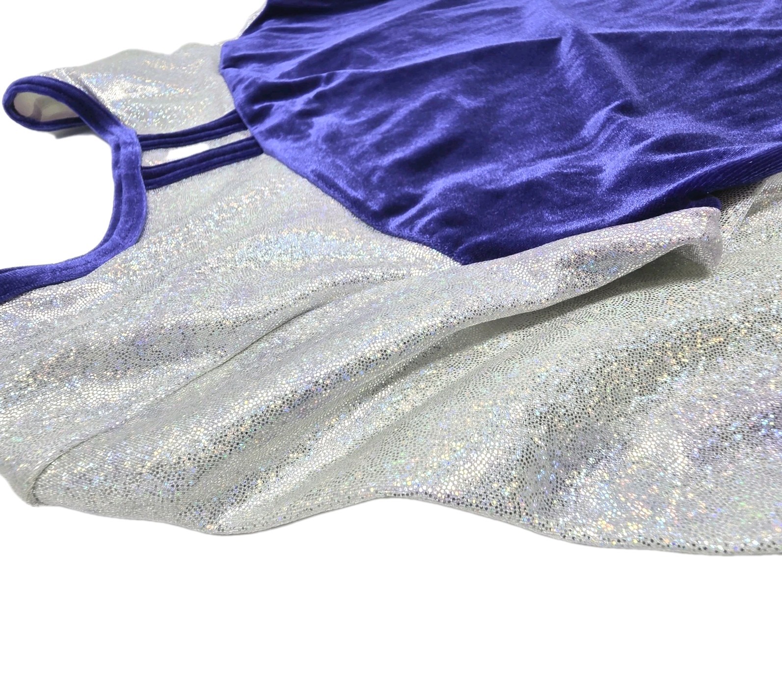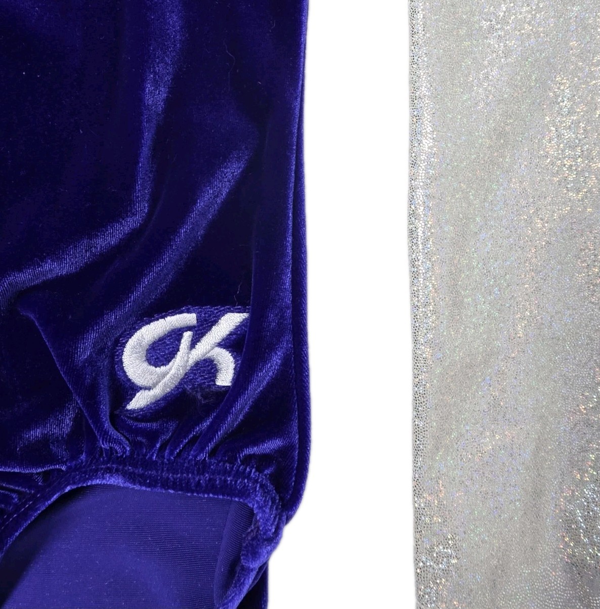 как выглядит GK Elite VTG Opal Metallic Blue Violet Velvet Logo Competition Leotard Size AM фото