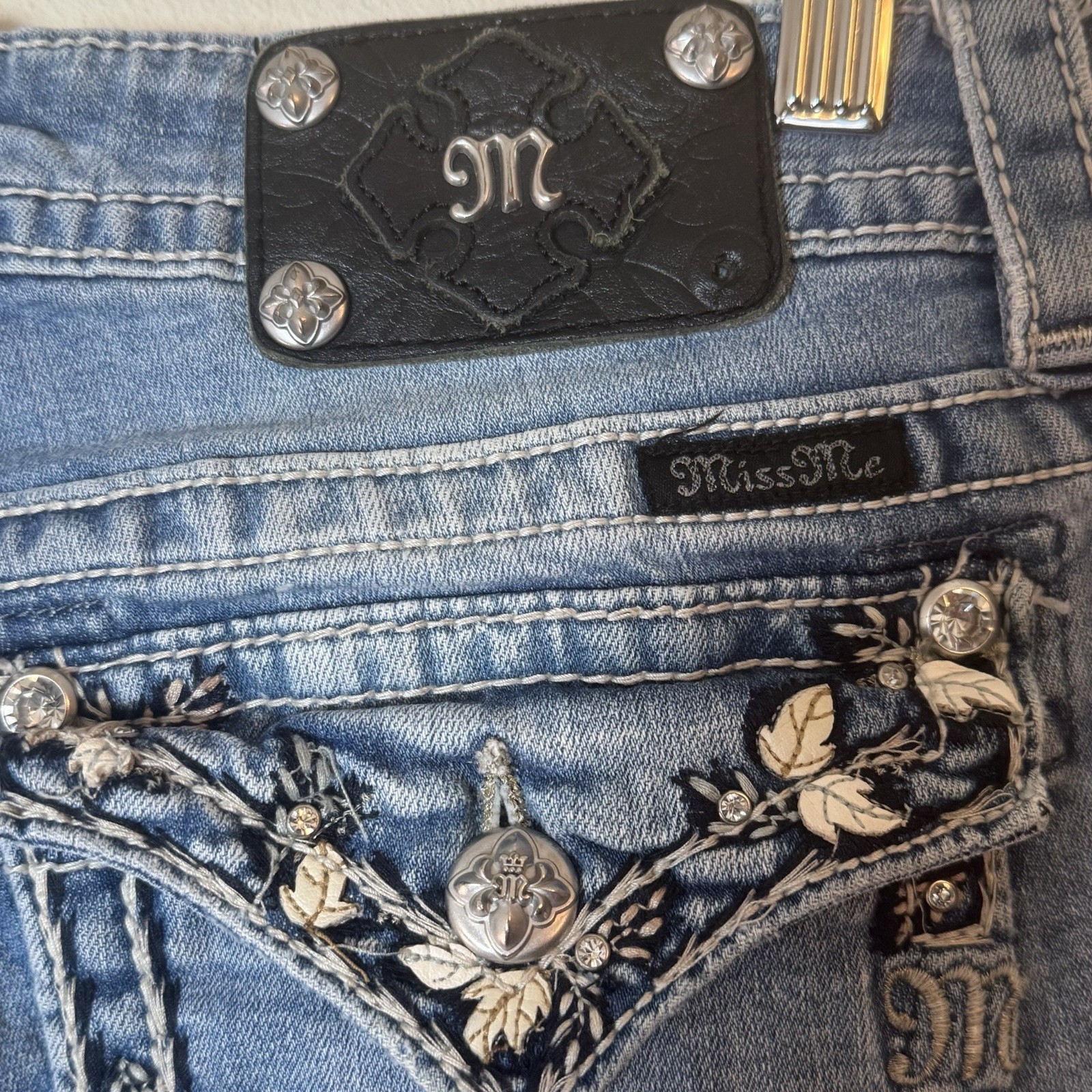 как выглядит Miss Me Signature Cuffed Capri Jeans Size 30 Medium Wash Stretch Denim фото