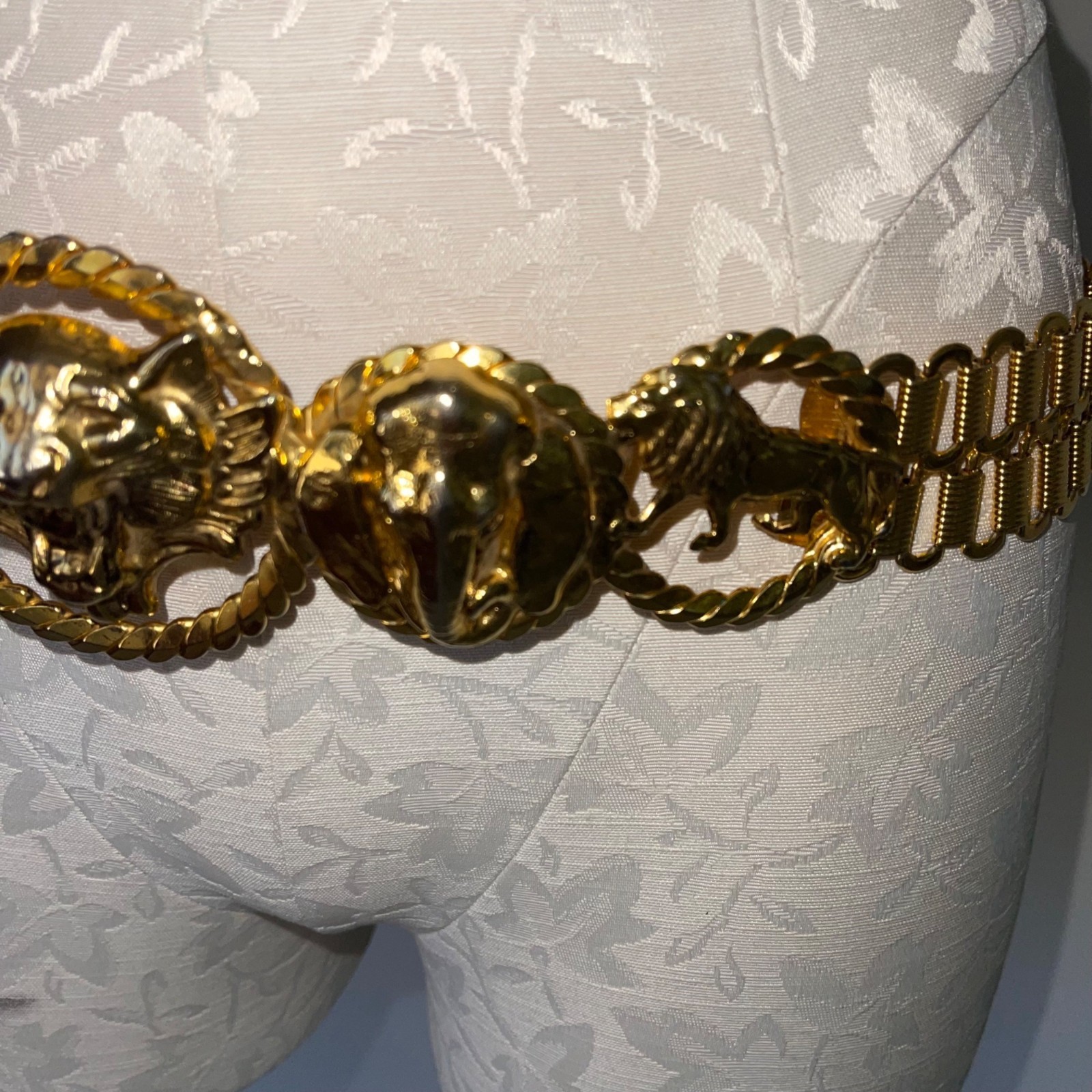как выглядит Vintage Womens Chain Belt One Size Metal Tiger Lion Elephant Head Waist Hip Rare фото
