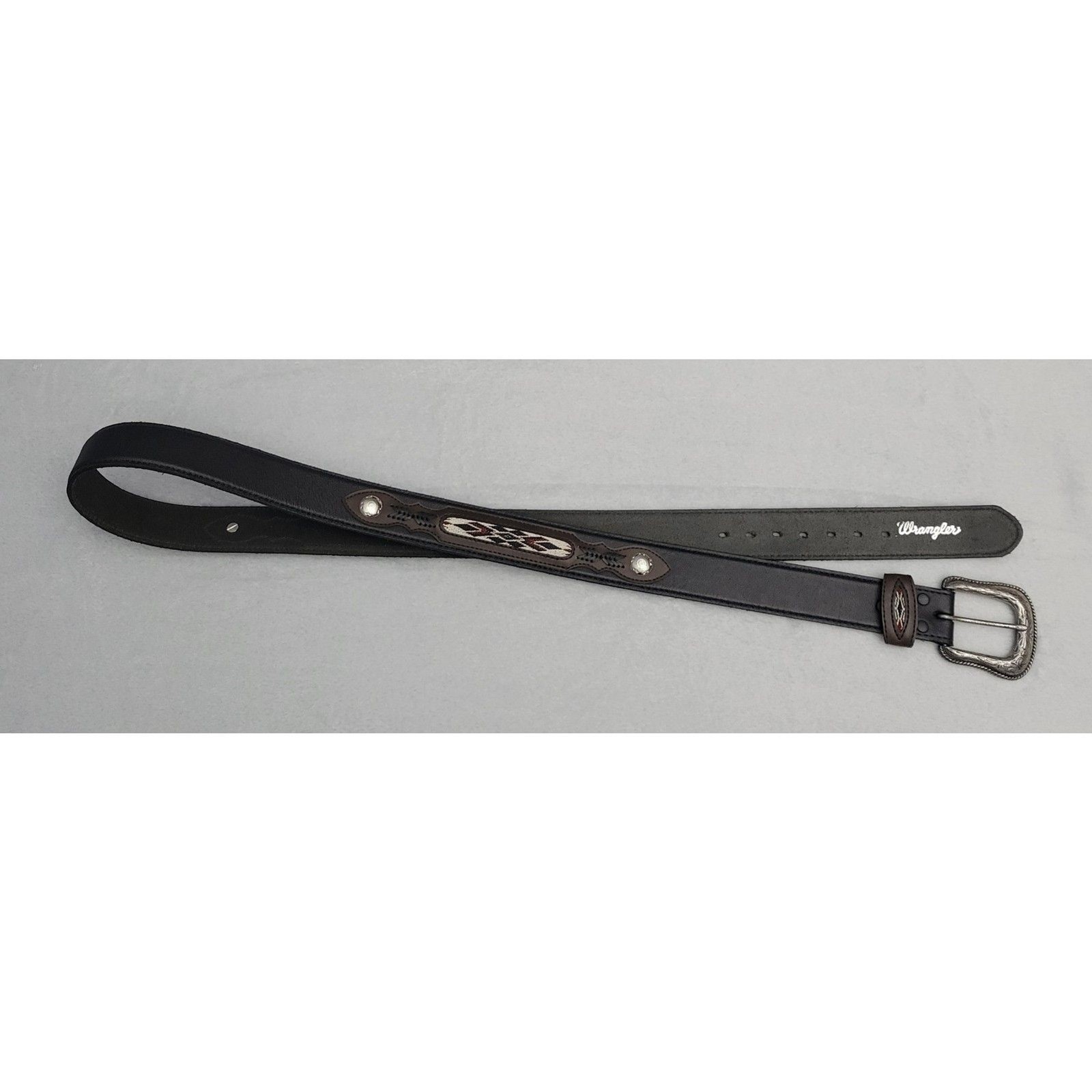 Wrangler Mens Genuine Leather Silver Concho Belt 46 BLK BRN Aztec Inlay Mexico