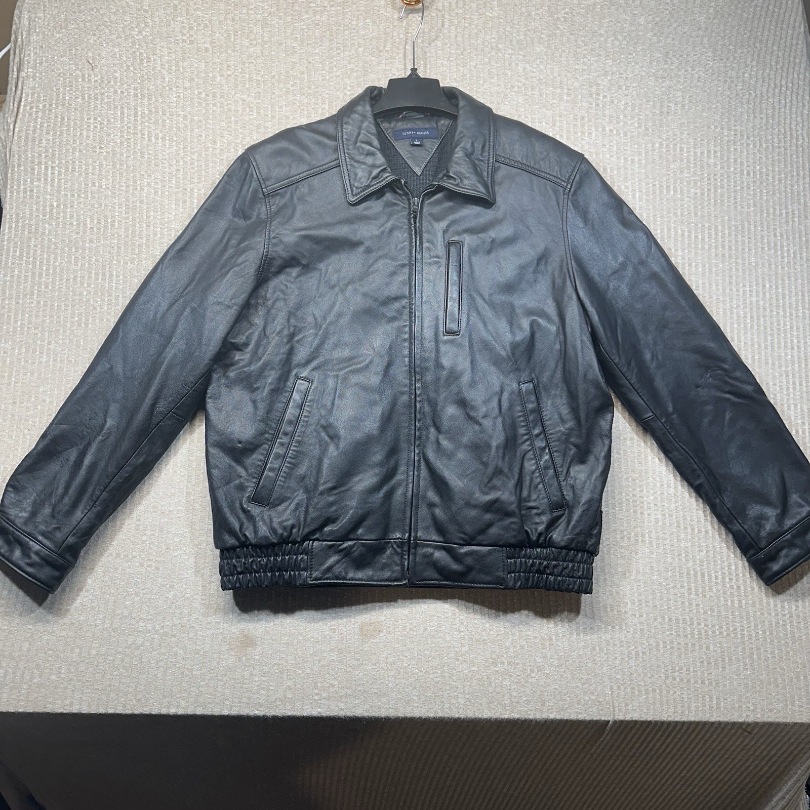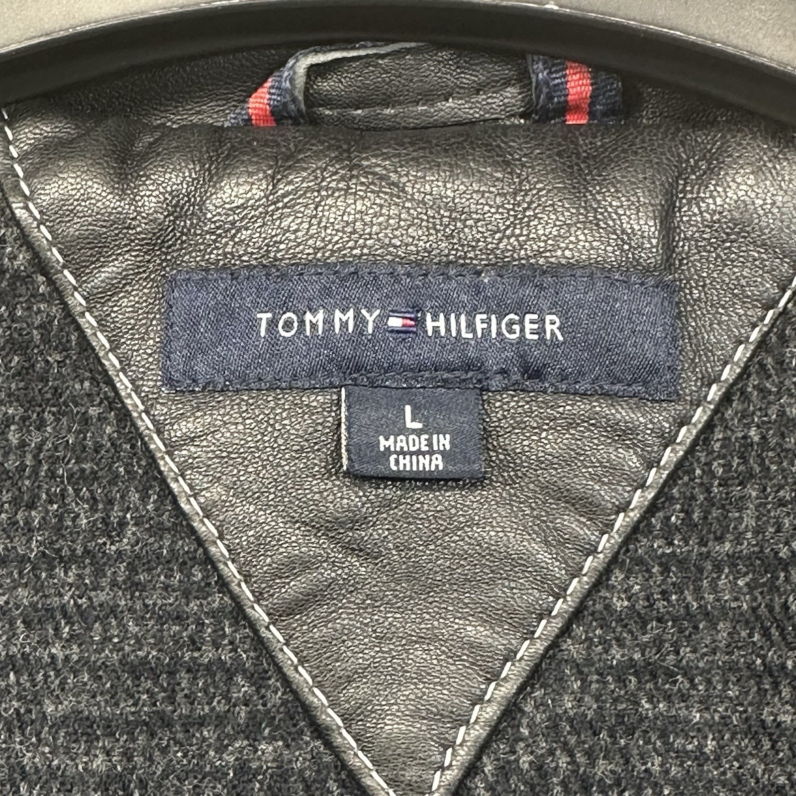 как выглядит Vintage Mens Tommy Hilfiger Coat Black Leather Zip Front Jacket Wool Lined SZ XL фото