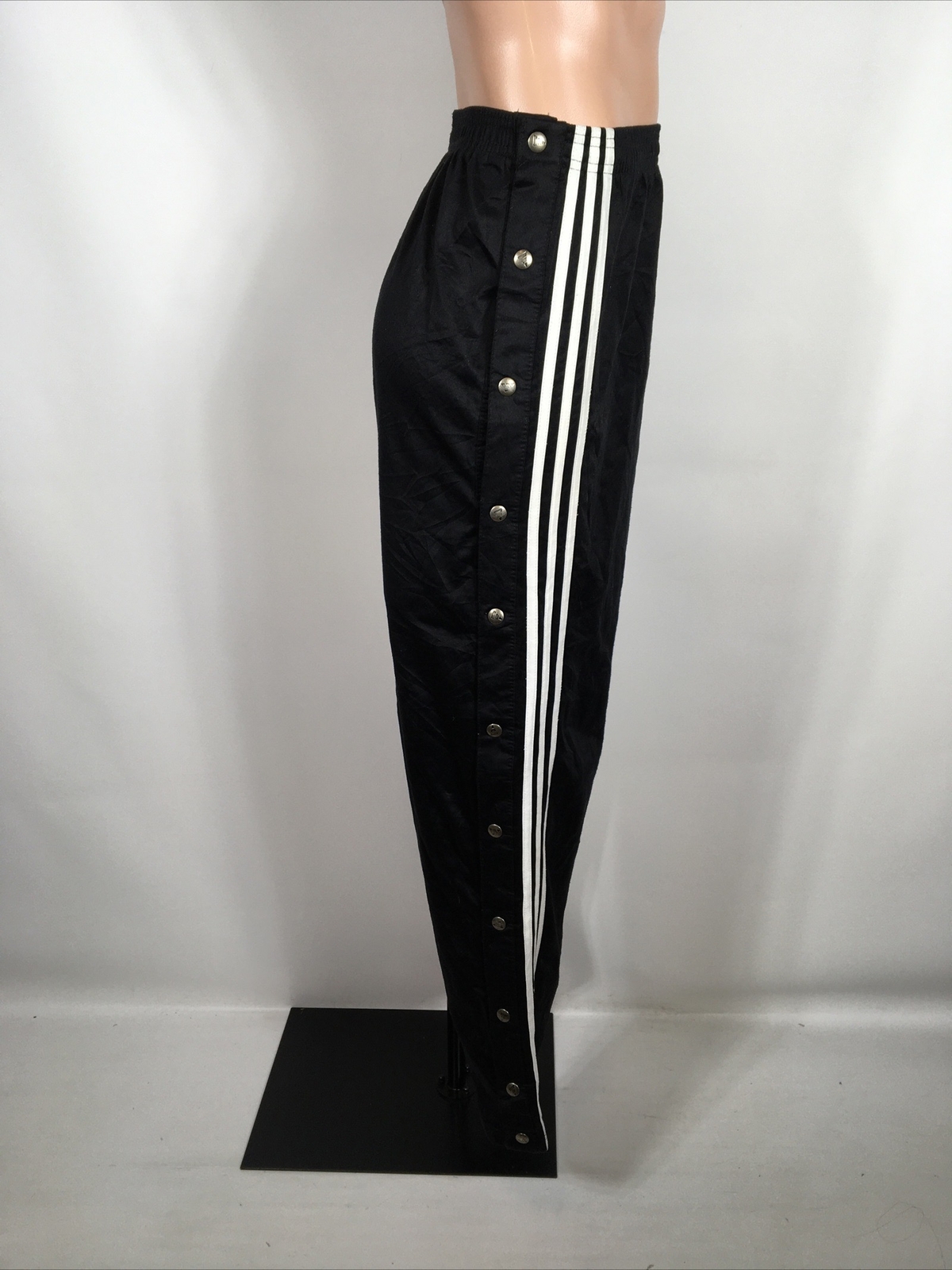 Vtg ADIDAS BLACK WHITE BREAKAWAY SNAP FLAG TAG 3 STRIPE WARM UP TRACK PANTS L