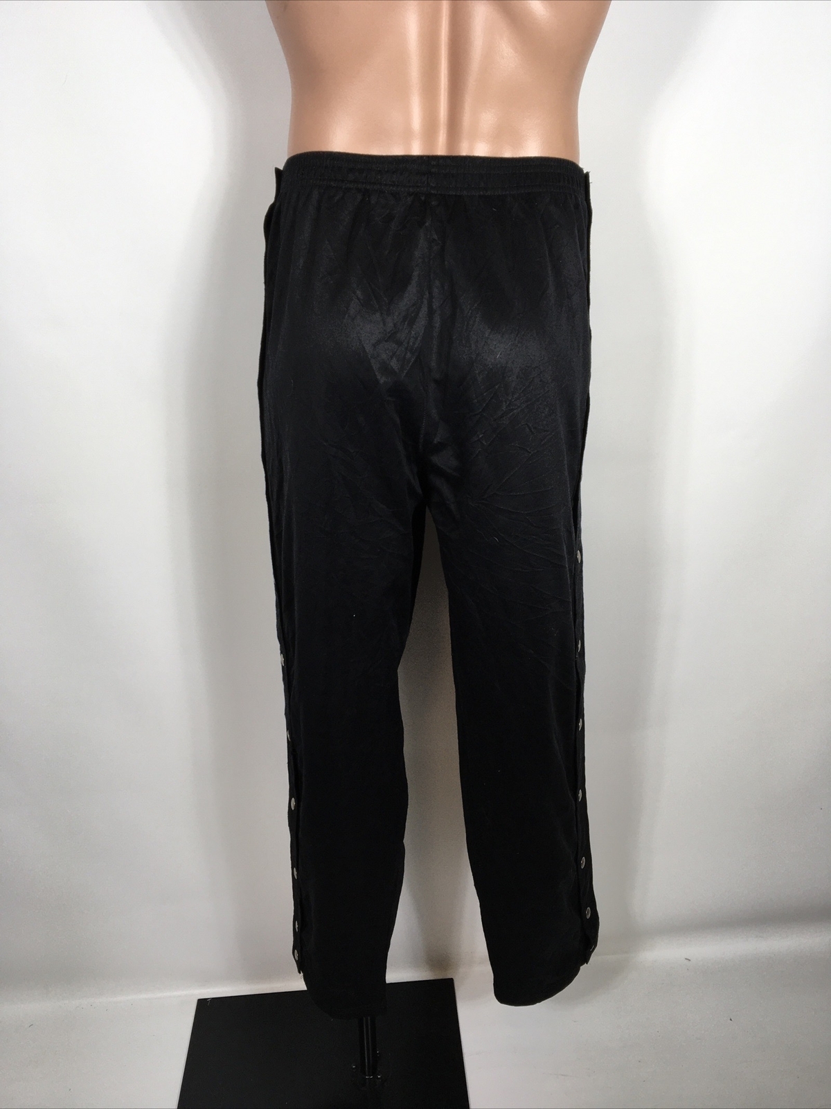 как выглядит Vtg ADIDAS BLACK WHITE BREAKAWAY SNAP FLAG TAG 3 STRIPE WARM UP TRACK PANTS L фото