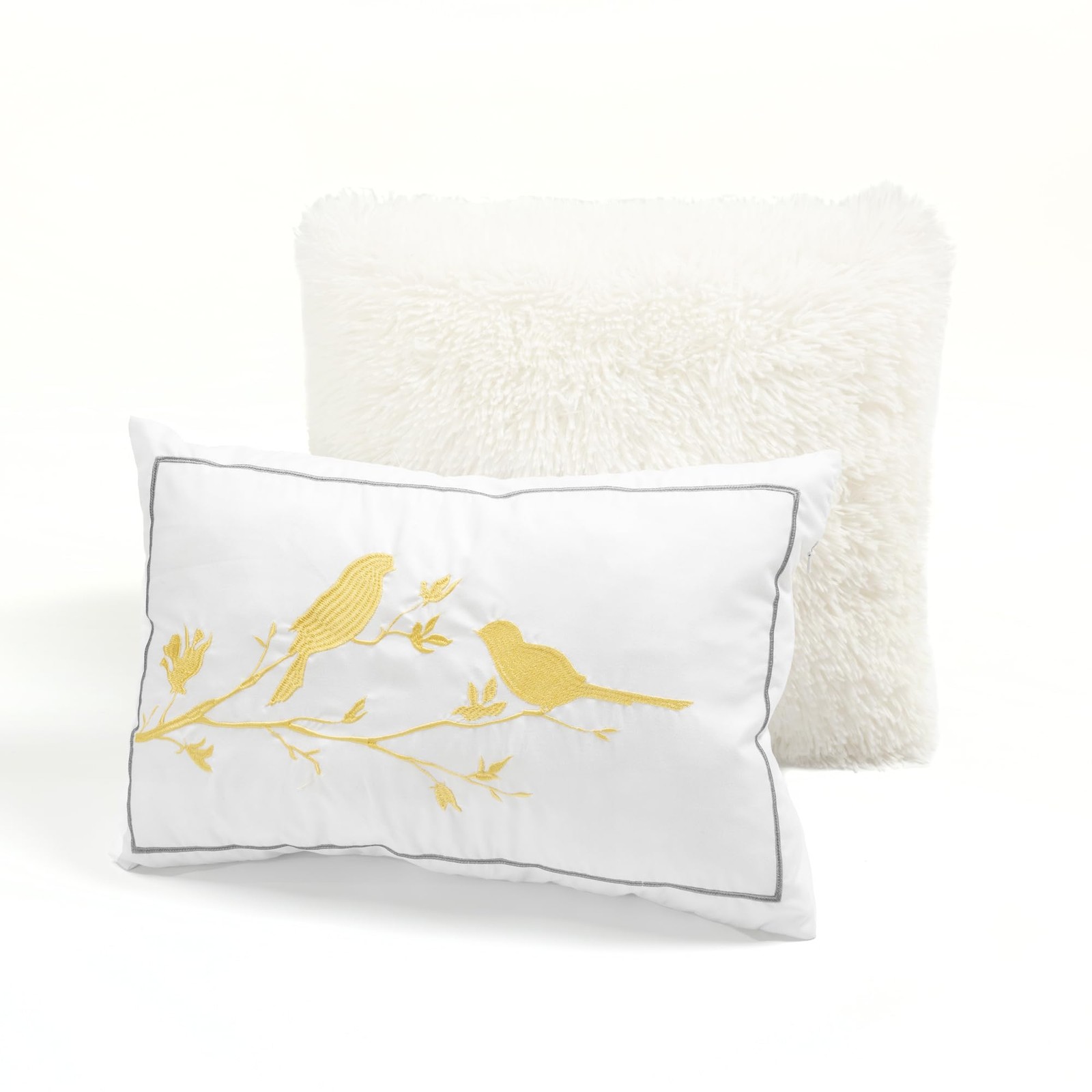 как выглядит Leah Reversible Floral Quilt Set, 8 Piece Set, Full/ Queen, Yellow Gray - C... фото
