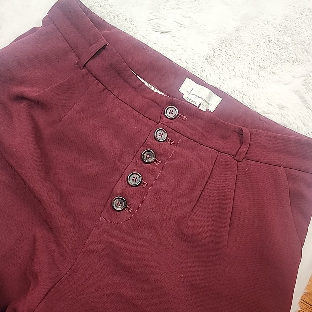 как выглядит Anthropologie Womens Sasha Button Fly Tapered Trousers Pants Burgundy Sz 10 фото