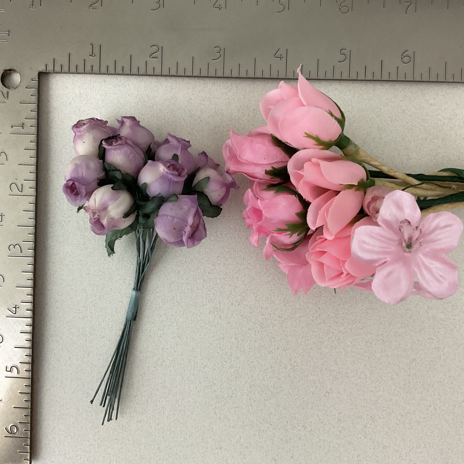 Lot of Vintage Flower Leaf Bunches - Millinery or Wedding Crafts, 129 pieces
