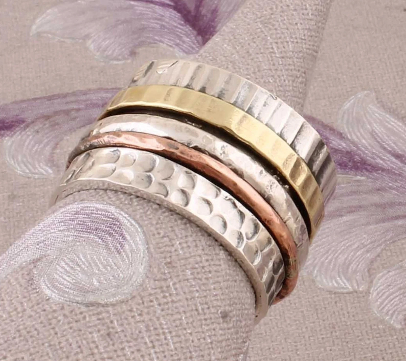 Solid 925 Silver Copper Brass Minimalist Healing Ring Handmade Unisex Thumb Ring