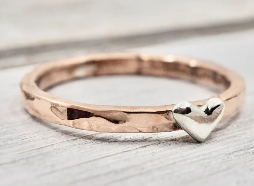 Solid Copper Silver Minimalist Healing Handmade Unisex Ring, Heart Ring