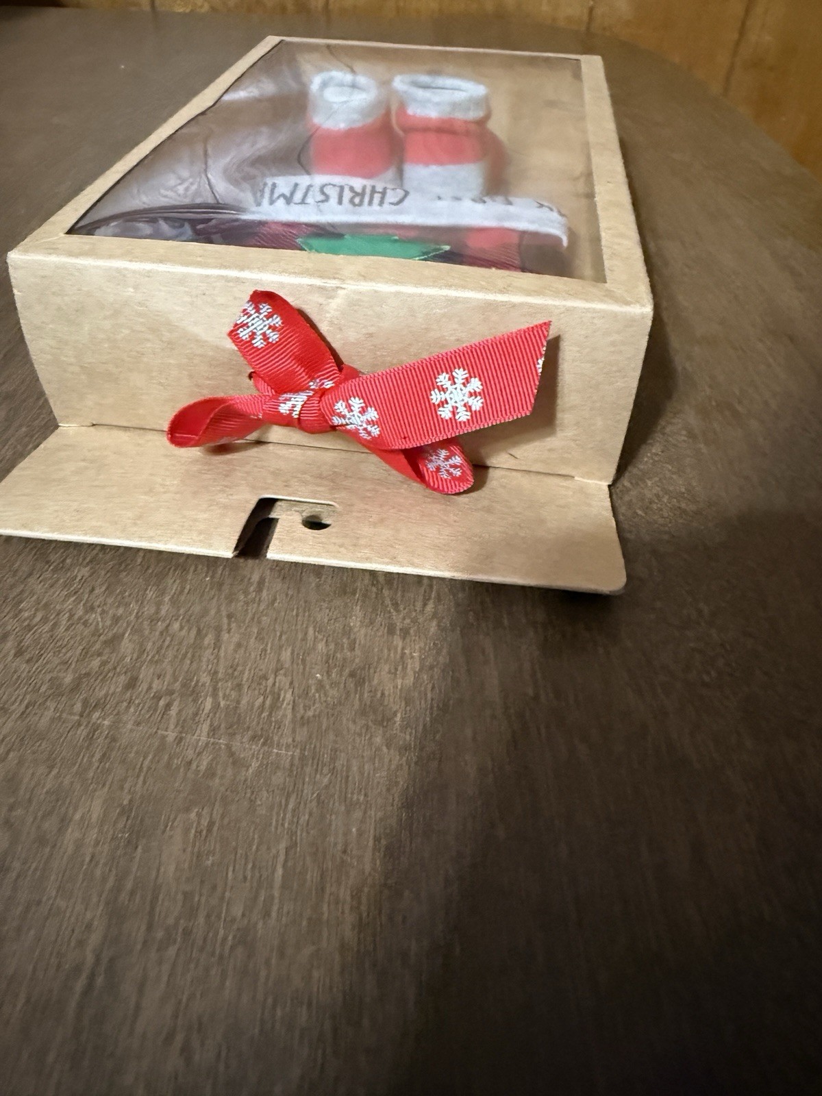 как выглядит My first Christmas baby hat socks Booties 0-6 month gift box Red Plaid Tree фото