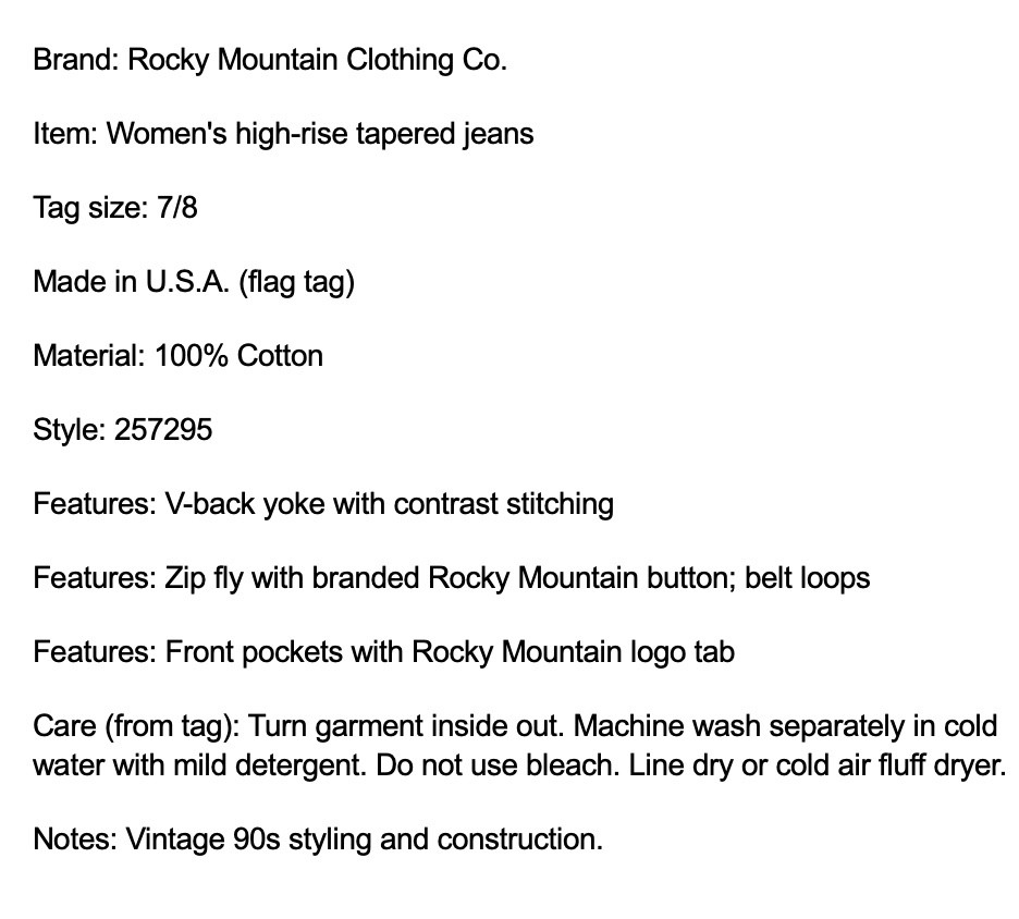 как выглядит Vintage Rocky Mountain Jeans Womens 7/8 Dark Blue High Rise Tapered Made USA 90s фото
