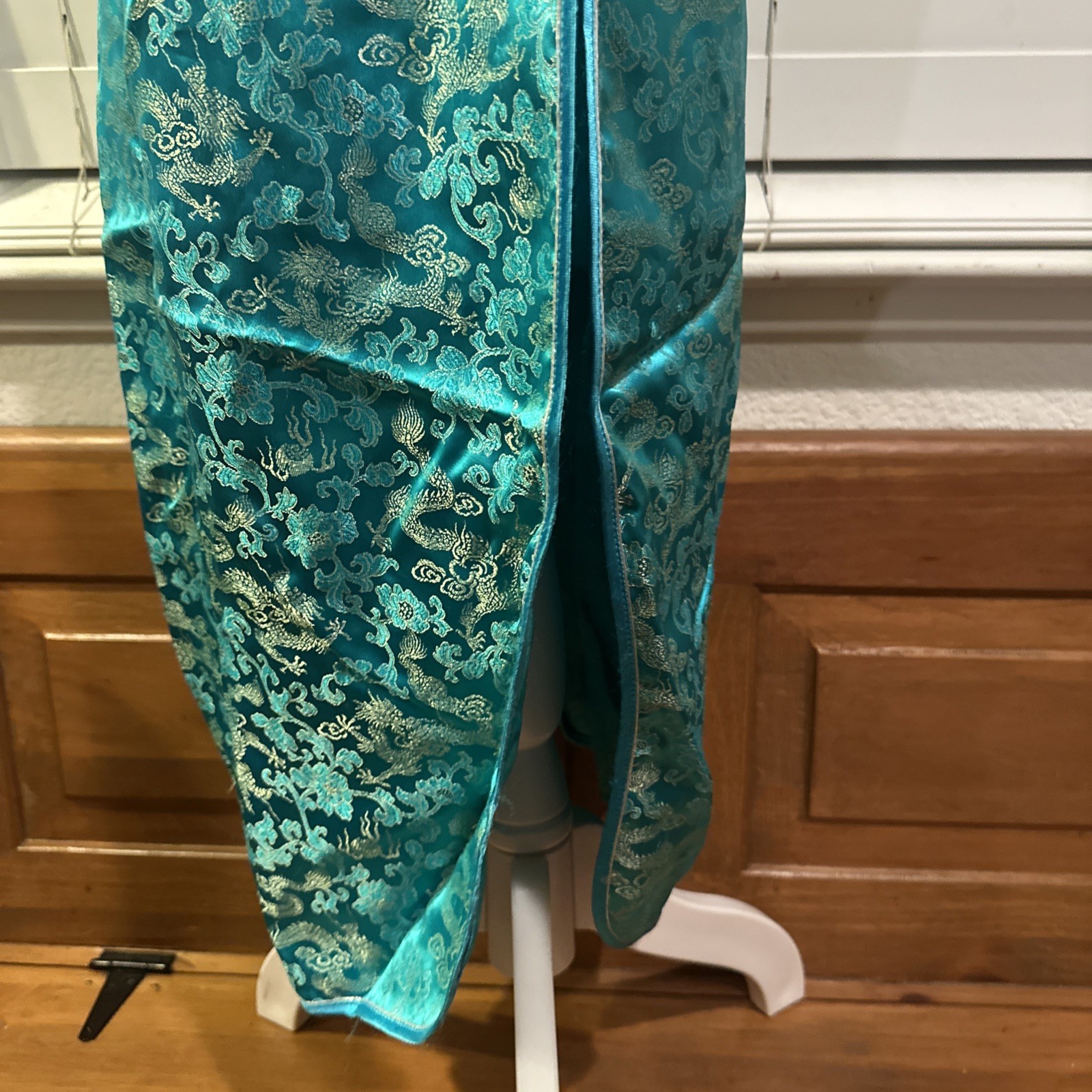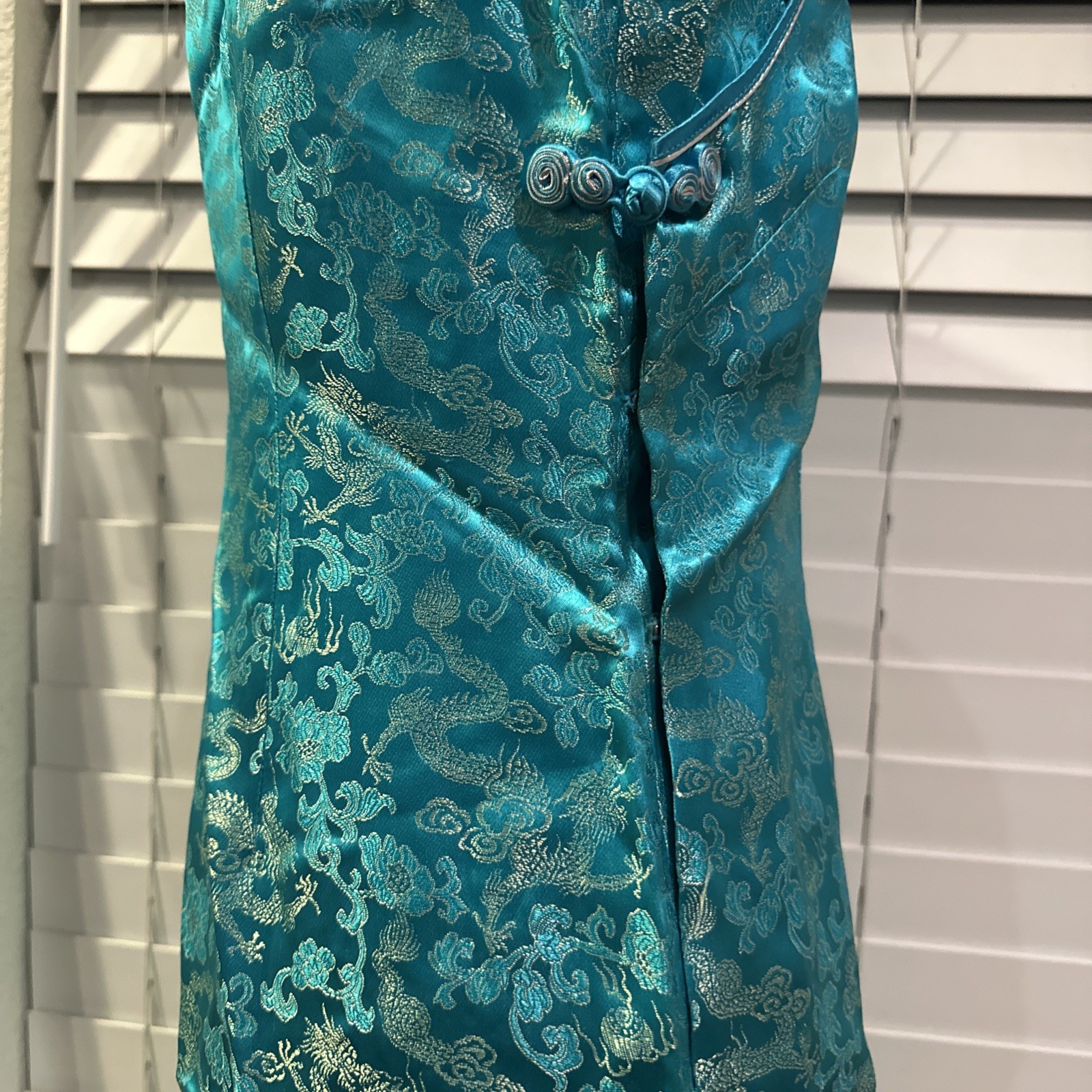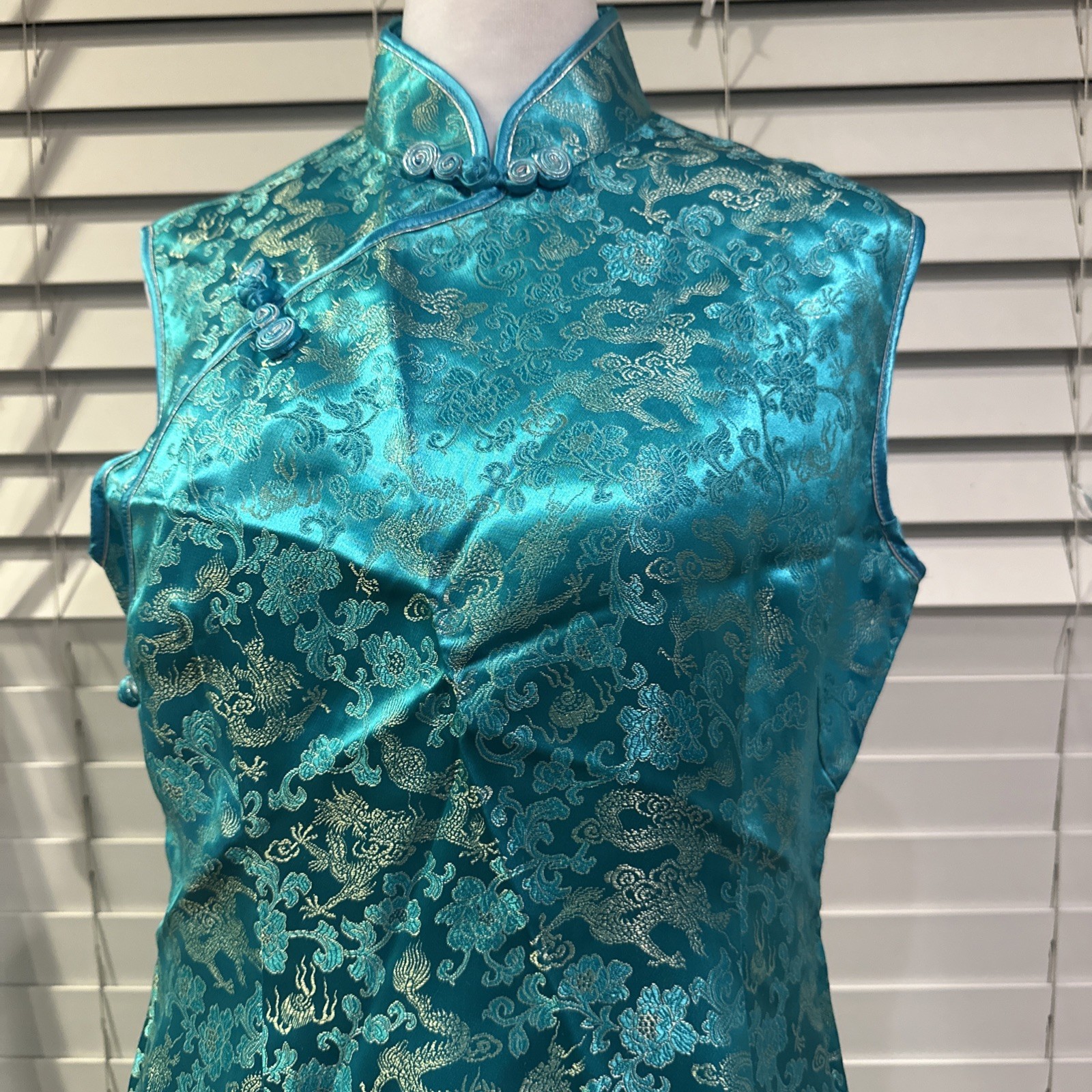 как выглядит Dragon Cheongsam Chinese 100 Silk Dress Womens Turquoise Floral Size Large фото