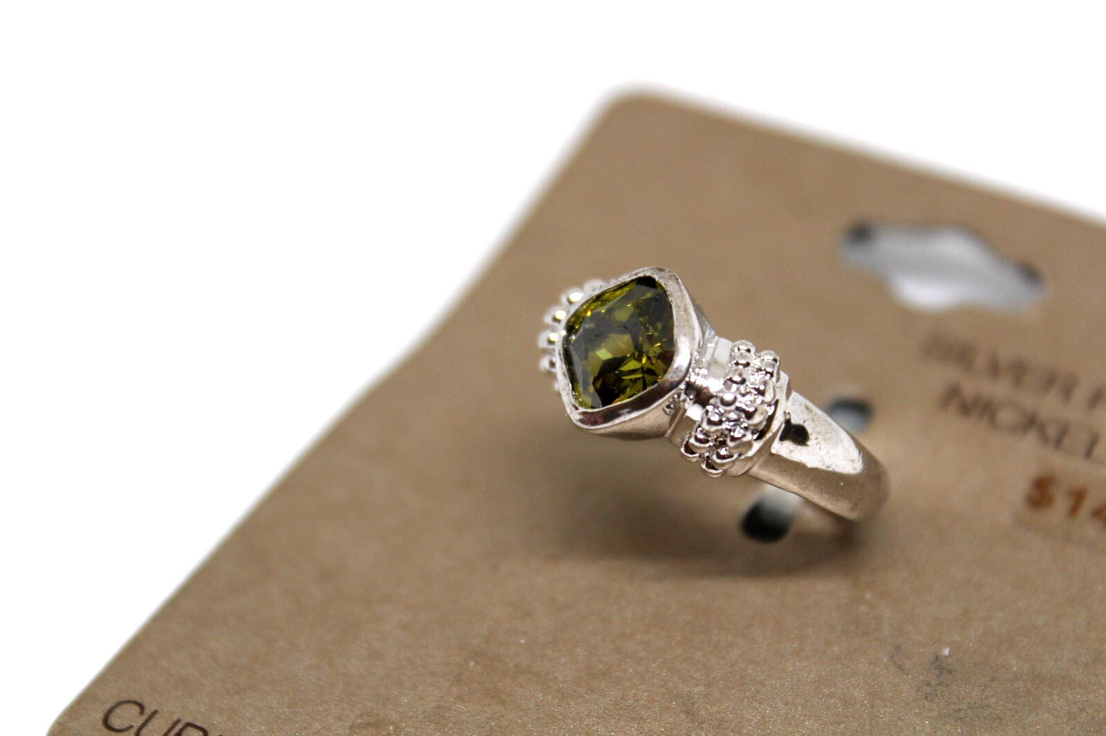 как выглядит Womens Green Cubic Zirconia Silver Plated Ring- Sizes: 7, 8, 9 фото
