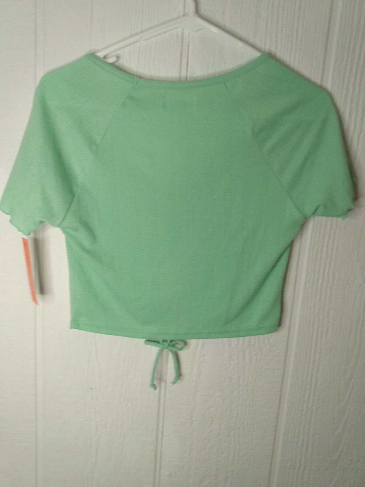 как выглядит Colsie Women M Green Lounge Crop Short Sleeve T-Shirt Top Drawstring Front NWT фото