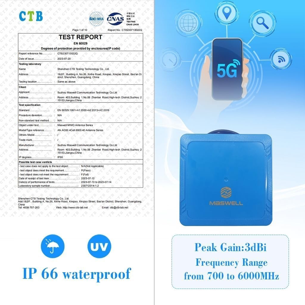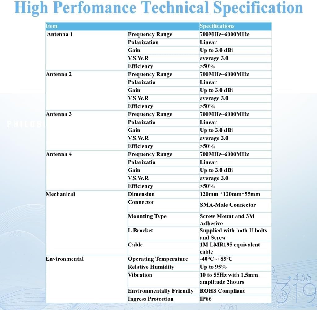 4X4 MIMO 5G Antenna, Omni BroadBand 700-6000MHz, 4G, LTE, 5GA, 5G NR, WiFi 6, Bl