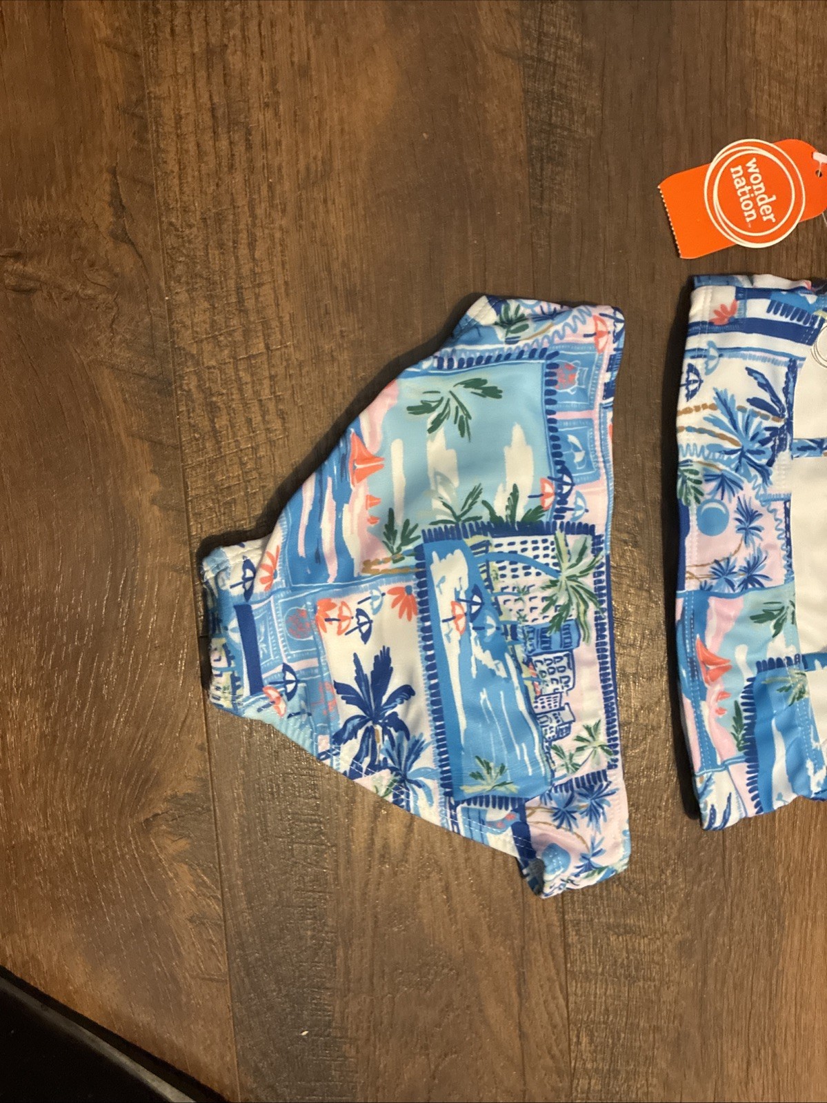 как выглядит NWT Wonder Nation Girls Keyhole Bikini Tropic Beach Sea Palms Size S 6-6X UPF 50 фото