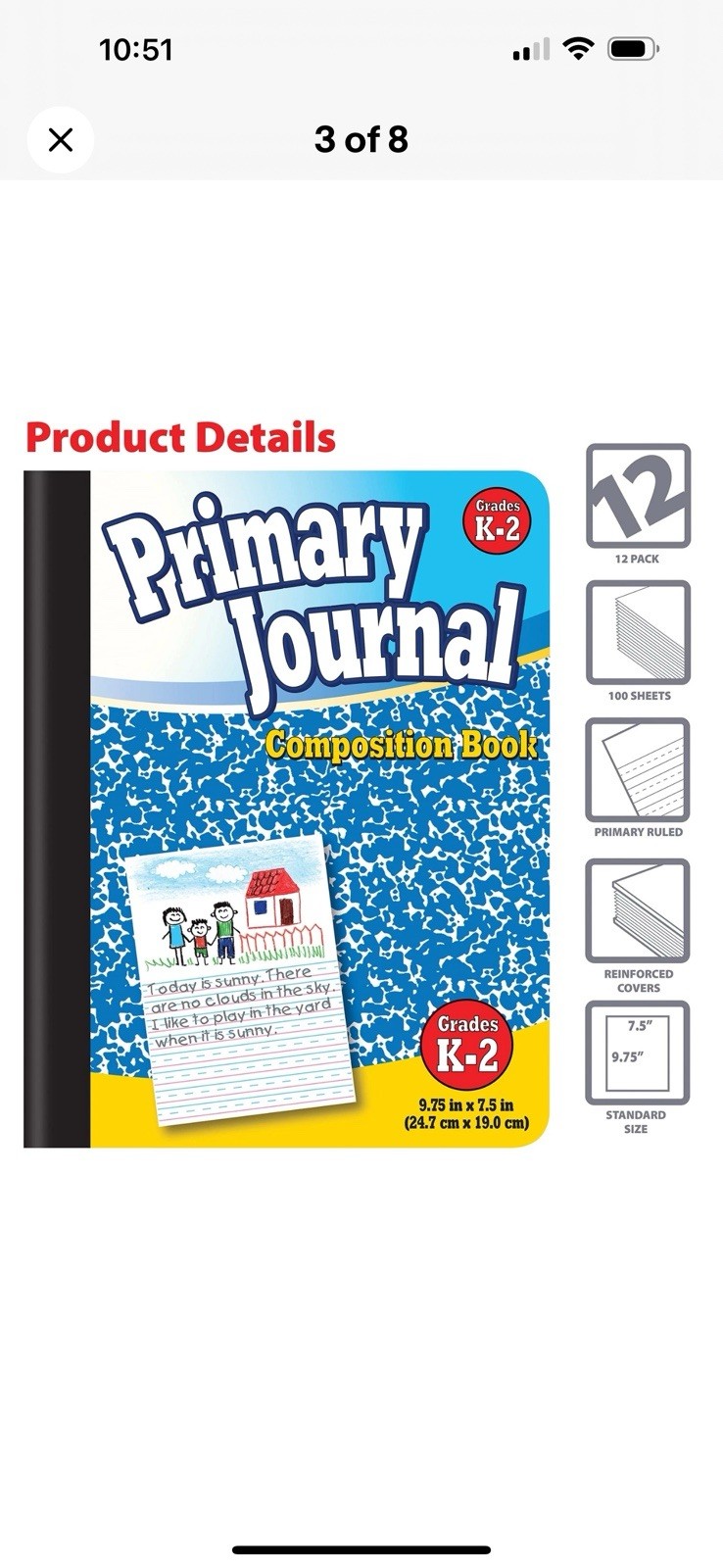 как выглядит 12 Primary Journal, Hardcover, Primary Composition Book Notebook - Grades K-2, фото