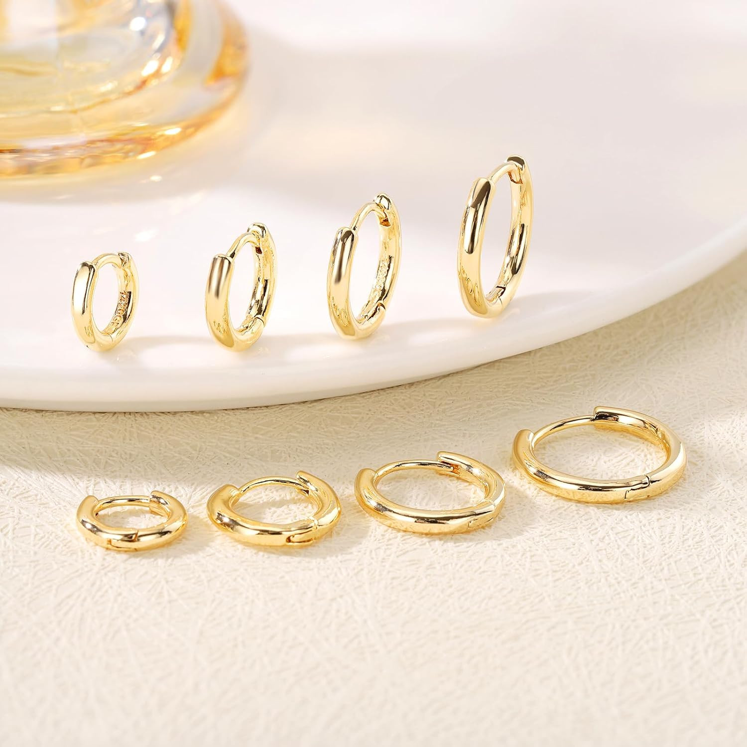 14K Gold Filled 4 Pairs Hoop Earrings for Women Hoop Earring Sets Earrings Light