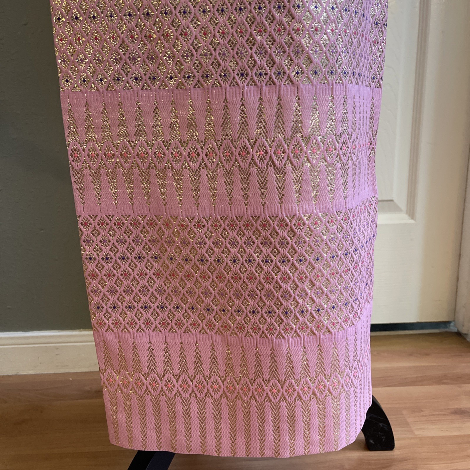 как выглядит Lao Thai Khmer Hmong Traditional Skirt top Sinh Pink Gold Back Zipper Clasp фото