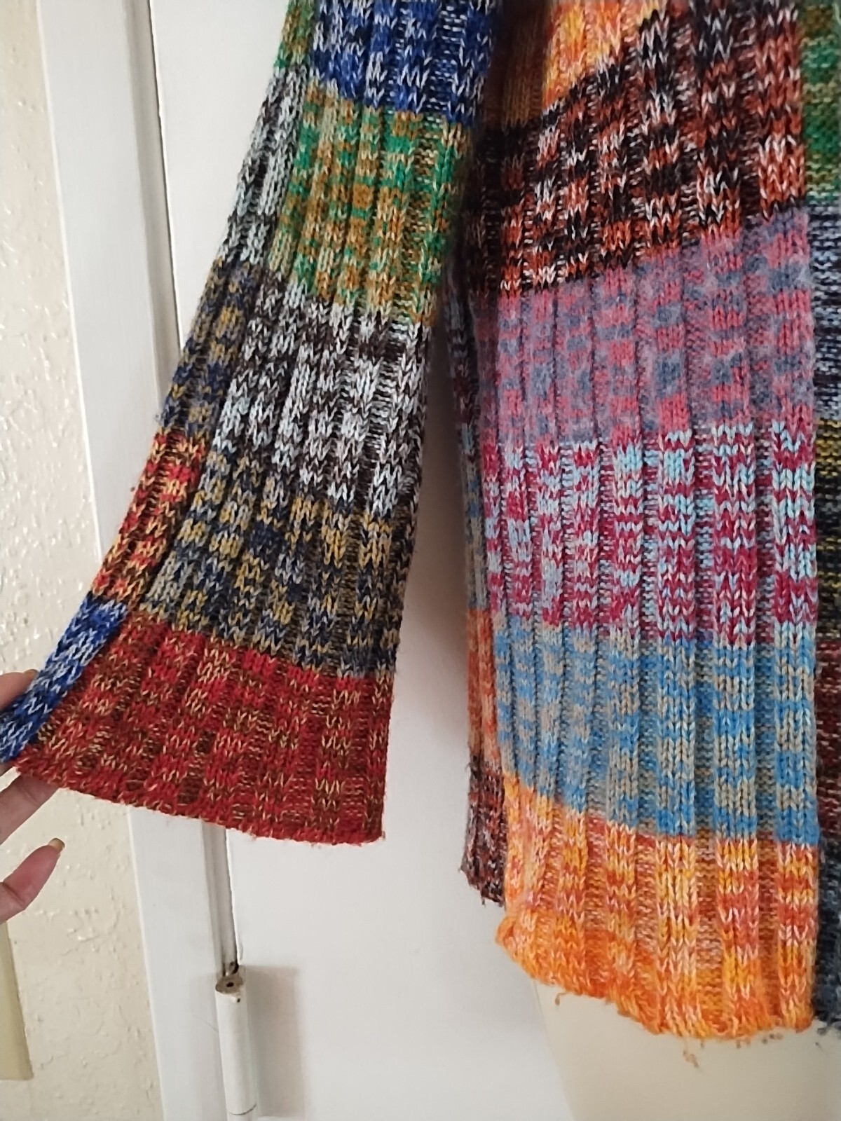как выглядит Vintage 70s Pronto Colorful Patchwork Knit Long Sleeve Sweater Women SzM фото