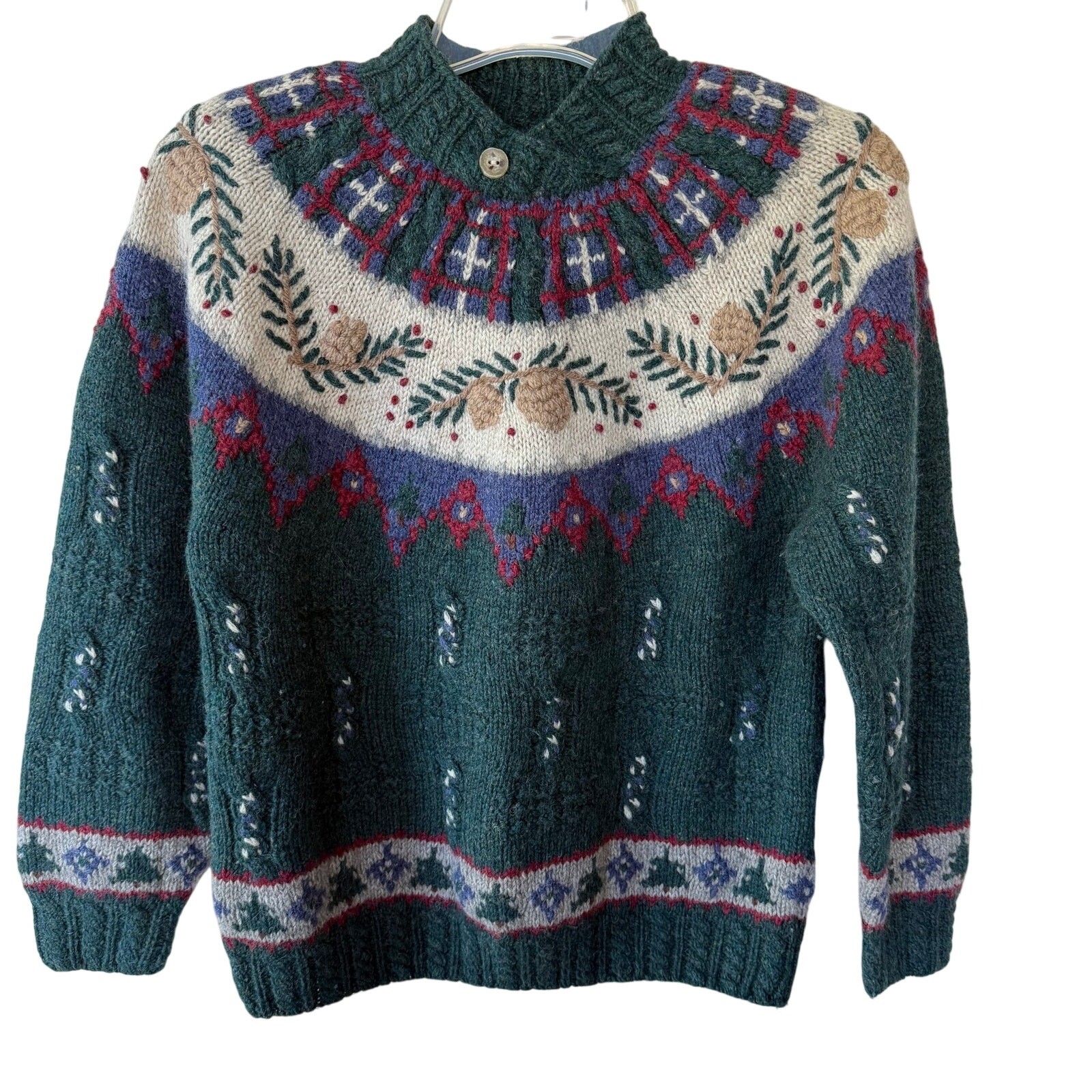 Talbots Hand knit Nordic wool faire isle sweater pinecone pattern Size M/P