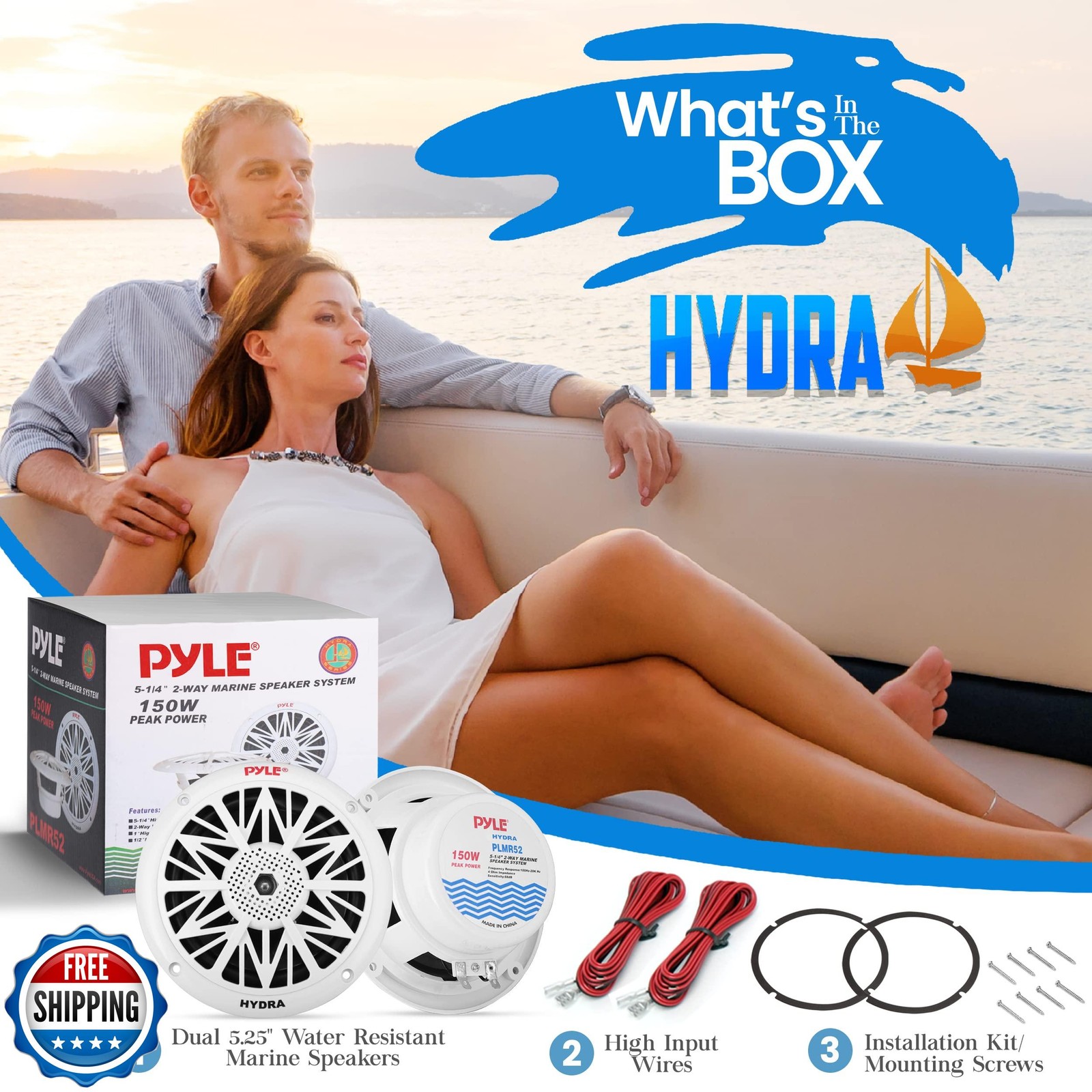 Pyle 5.25 Inch Dual Marine Speakers - 2 Way Waterproof and Weathe