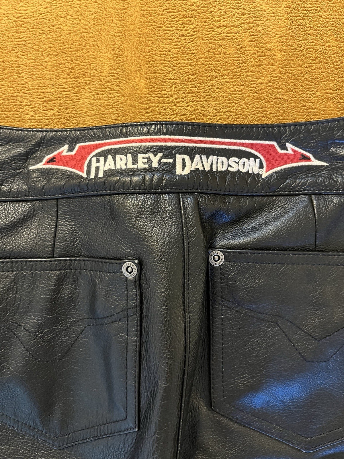 как выглядит Vintage Harley Davidson Black Leather Pants Womens Rn 103819 фото