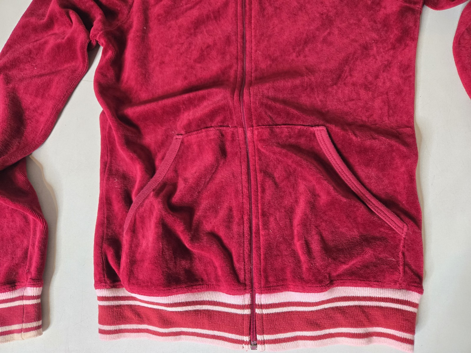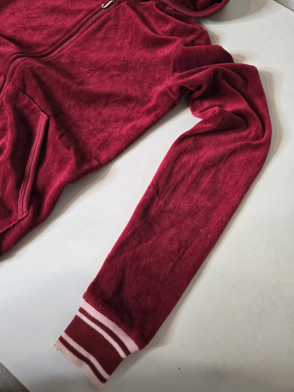 как выглядит Juicy Couture Tracksuit Womens Medium Red Velour Hoodie USA Size Small фото