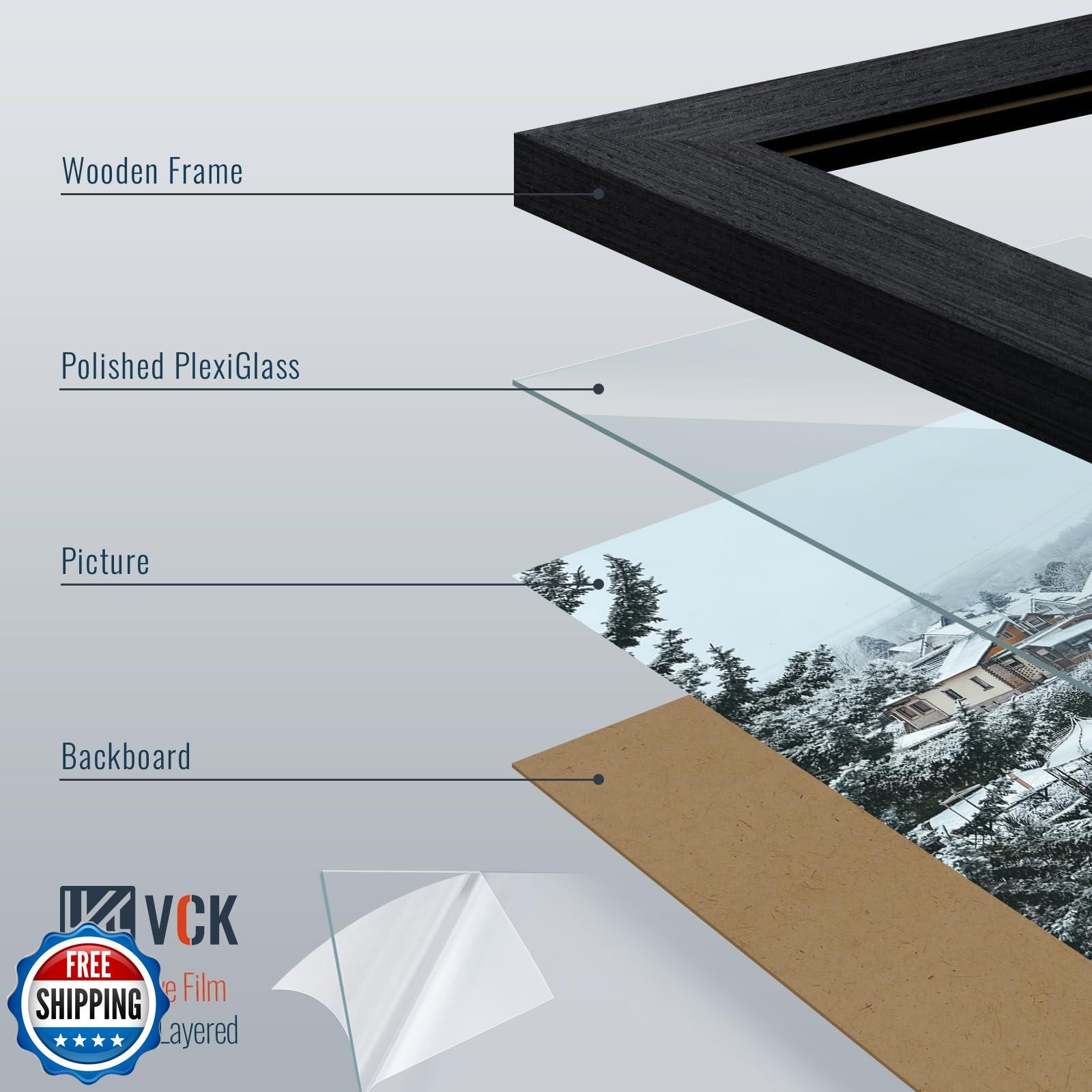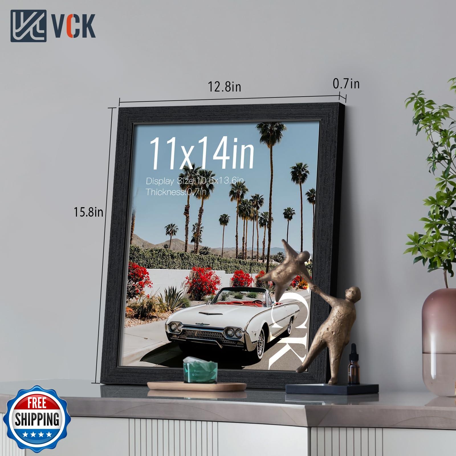VCK 11x14 Black Oak Picture Frames 3 Pack, High-End Wood Wide Bor