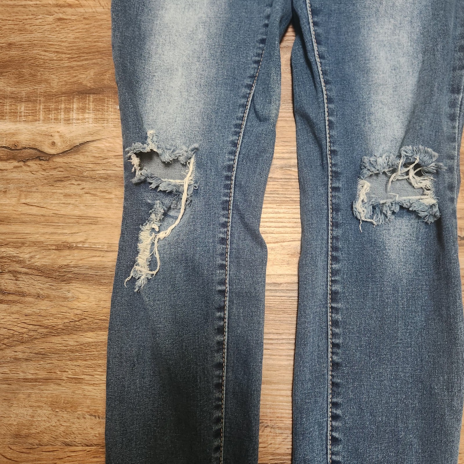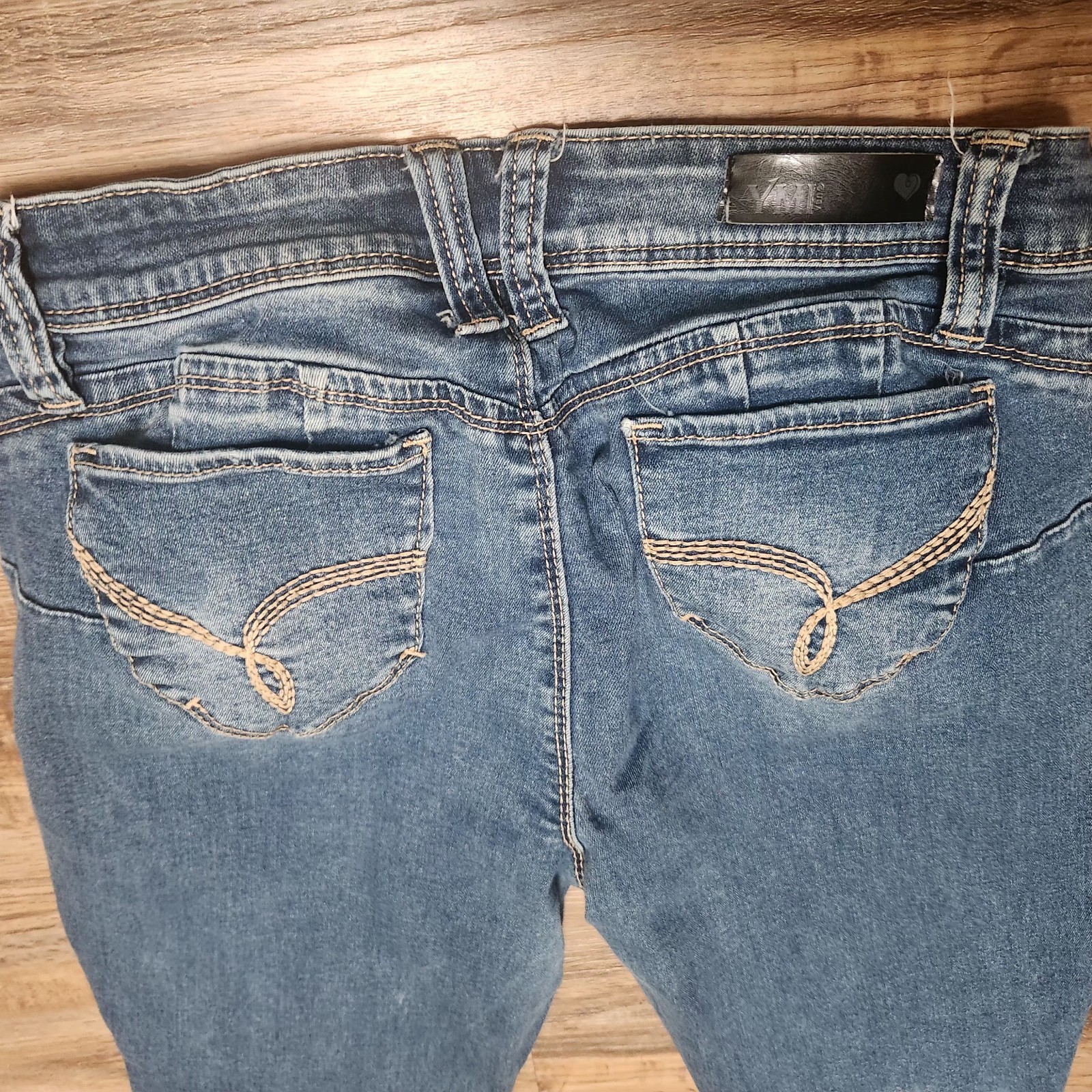 как выглядит YMI WannaBettaButt Faded Distressed Skinny Jeans Mid Rise Juniors Size 9 фото