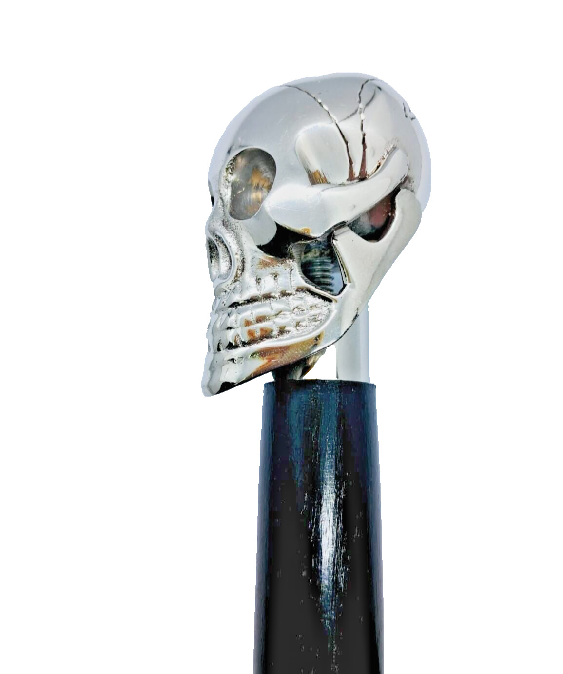 Victorian Walking Stick Cane Handle Only Antique Silver Chrome Skull Head Topper