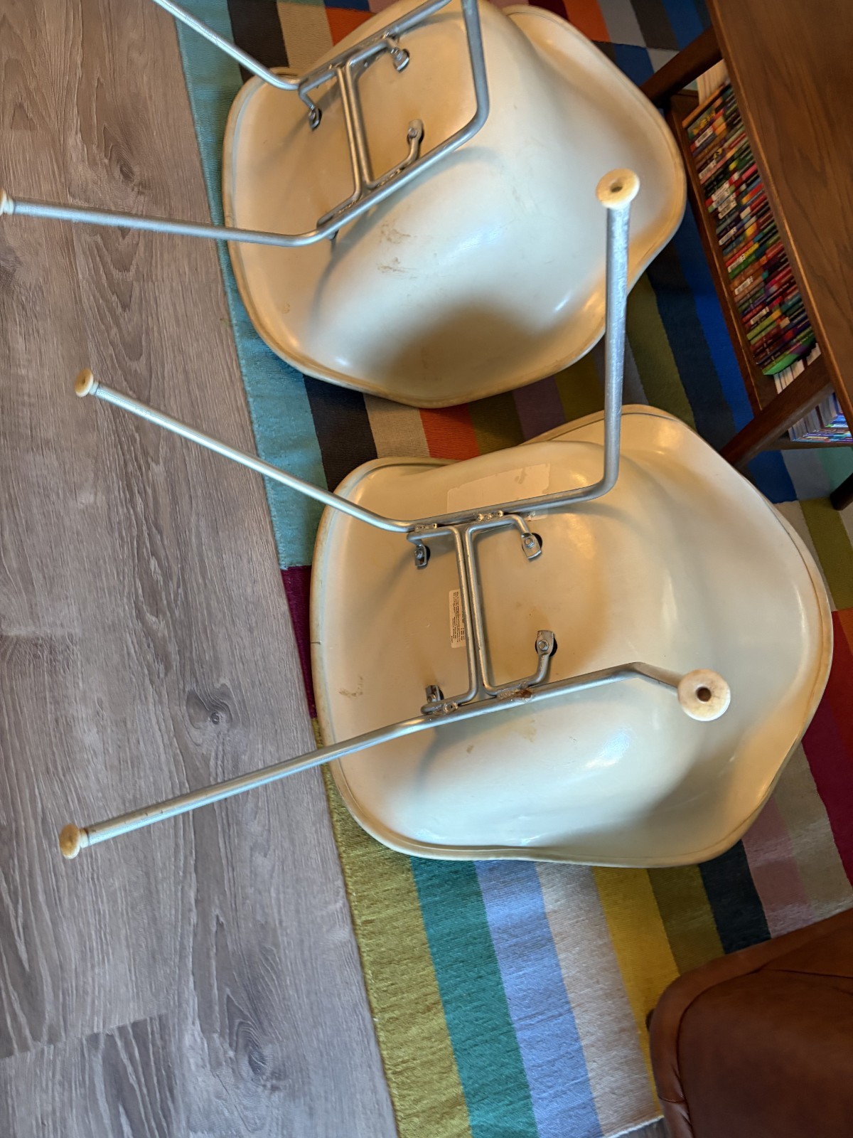 как выглядит Herman Miller Eames Leather Fiberglass Armchairs Pair 1970s 1980s Red фото
