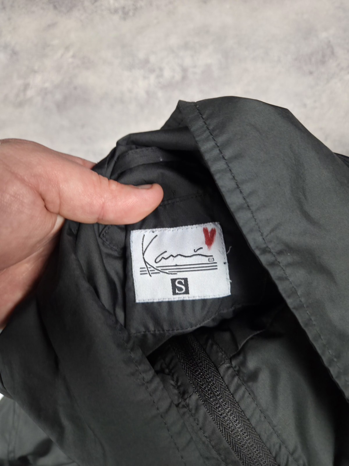 как выглядит Karl Kani Windbreaker Jacket Mens Big Logo Black Oversized Long Sleeve Size S фото