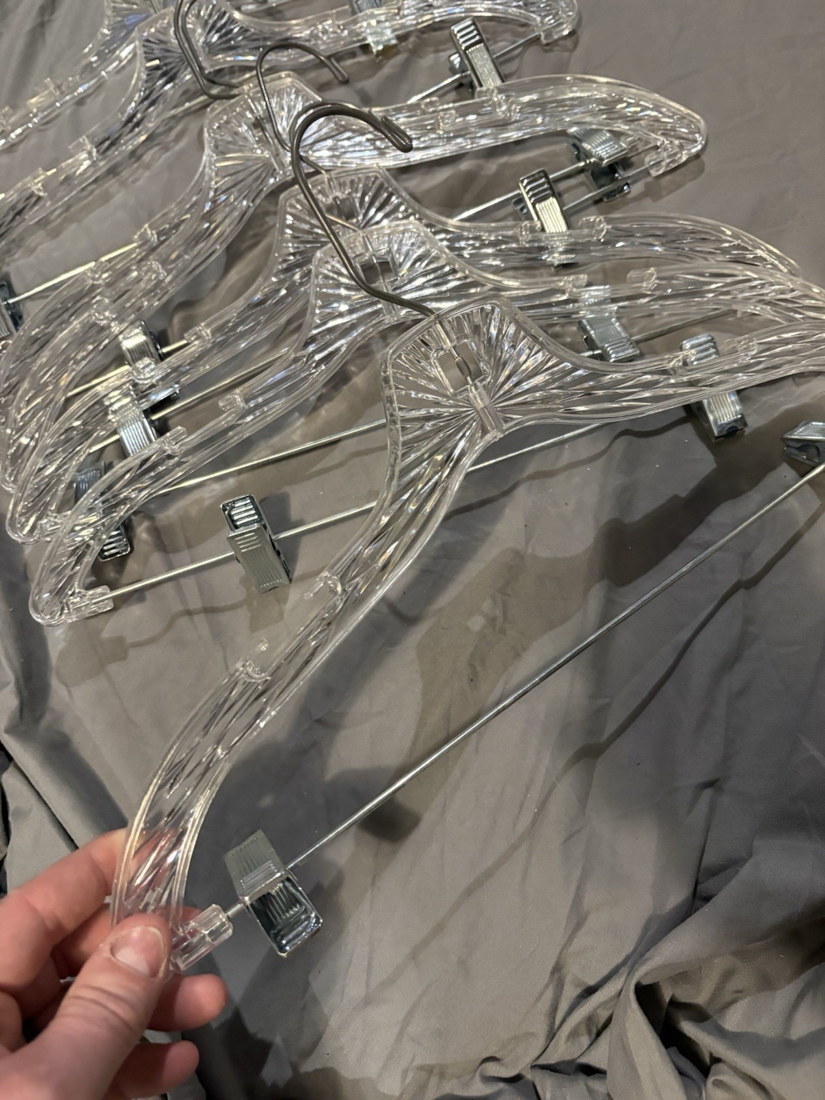 как выглядит Vintage Lot Of 7 Clear Hangers With Clips 16 фото