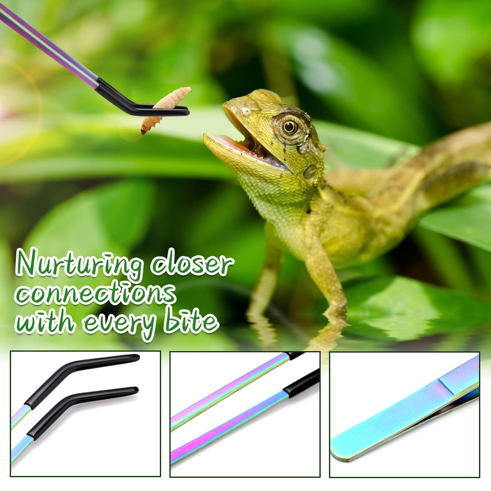 2PCS Stainless Steel Reptile Feeding Tongs with Rubber Tip, 10.6, Colorful