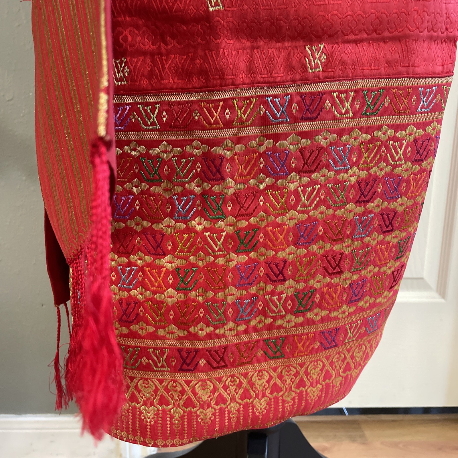 Lao Thai Khmer Traditional Skirt and sash Red Gold adjustable waist