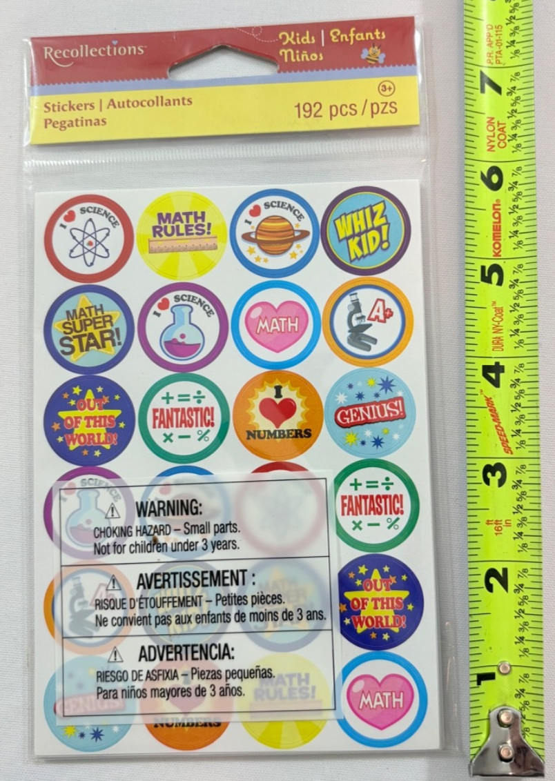 RECOLLECTIONS STICKERS/ TEACHER AWARDS MATH SCIENCE / 8 SHEETS