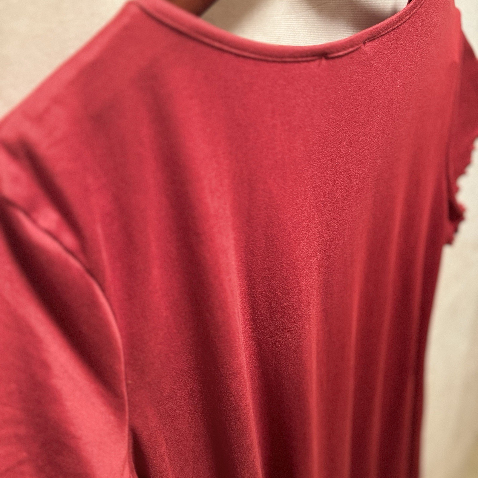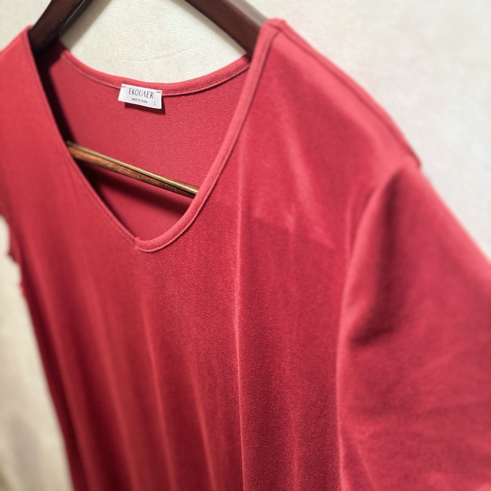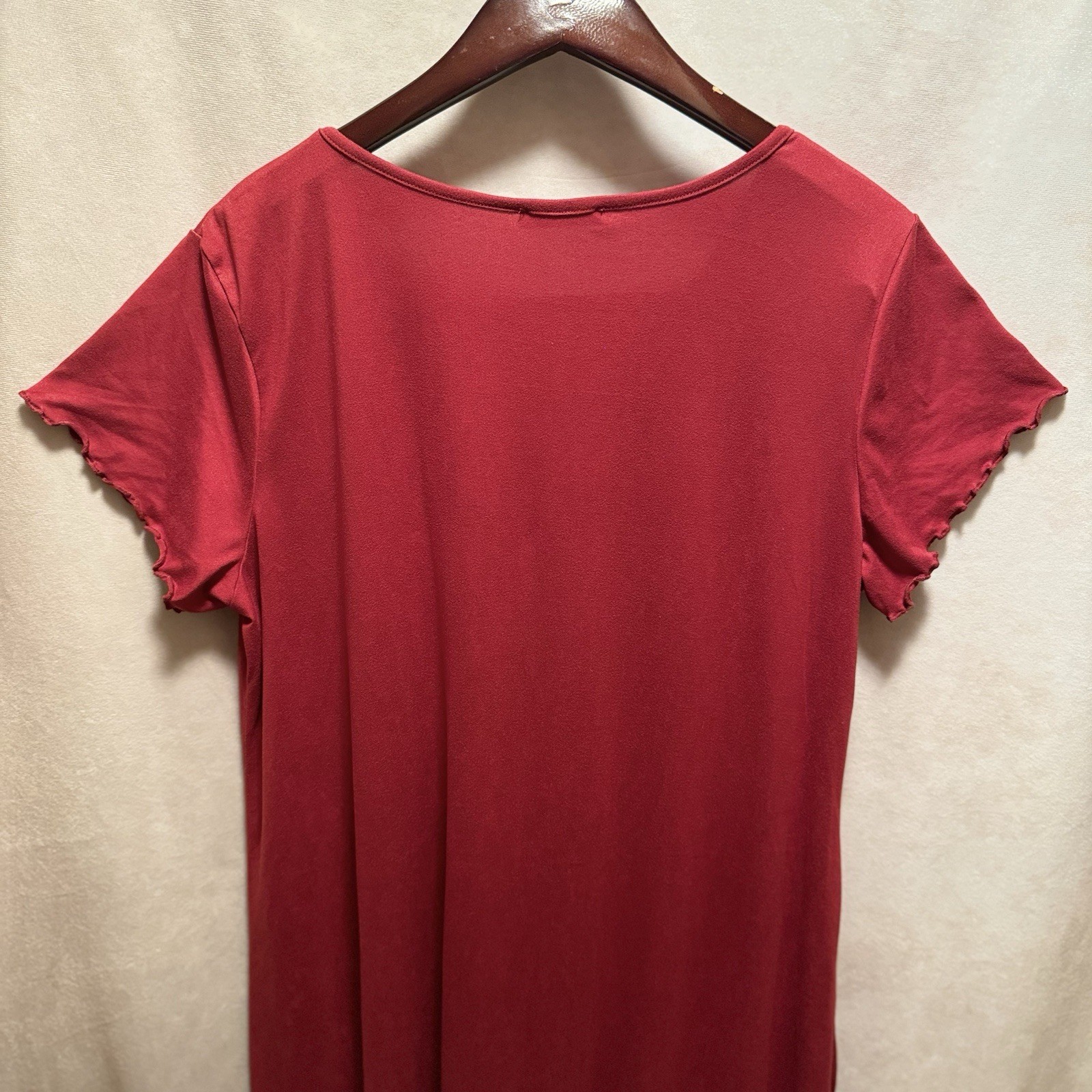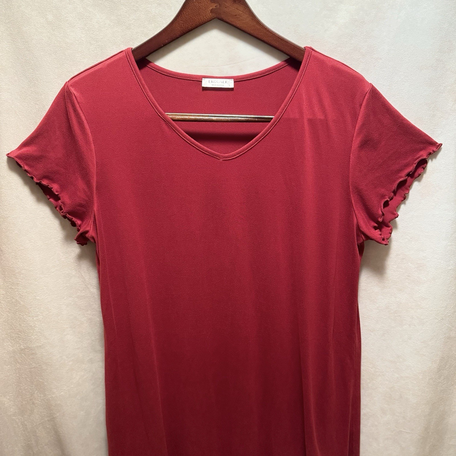 Ekouaer Women s Night Gown Size L Red/Burgundy Ruffled Short Sleeve V Neck Soft