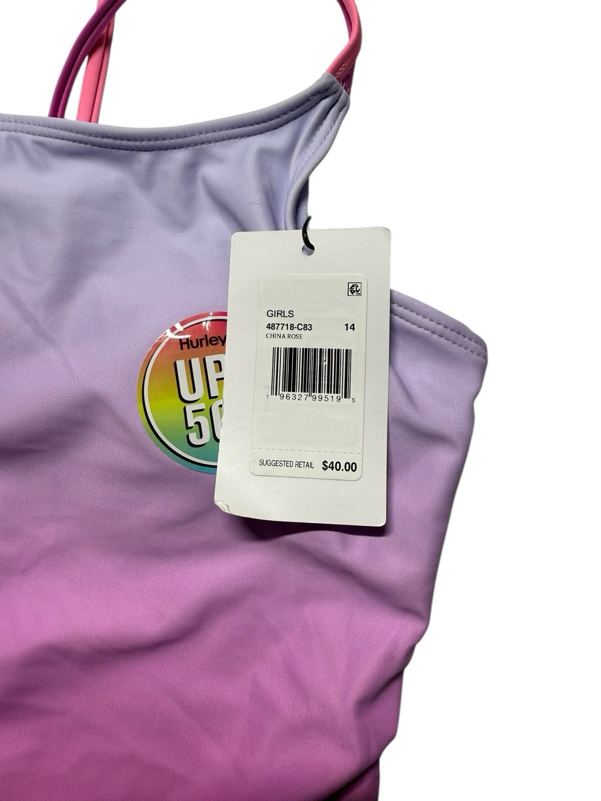 Brand New Hurley Girls Sz 14 One Piece Swimsuit China Rose UPF 50 Protection