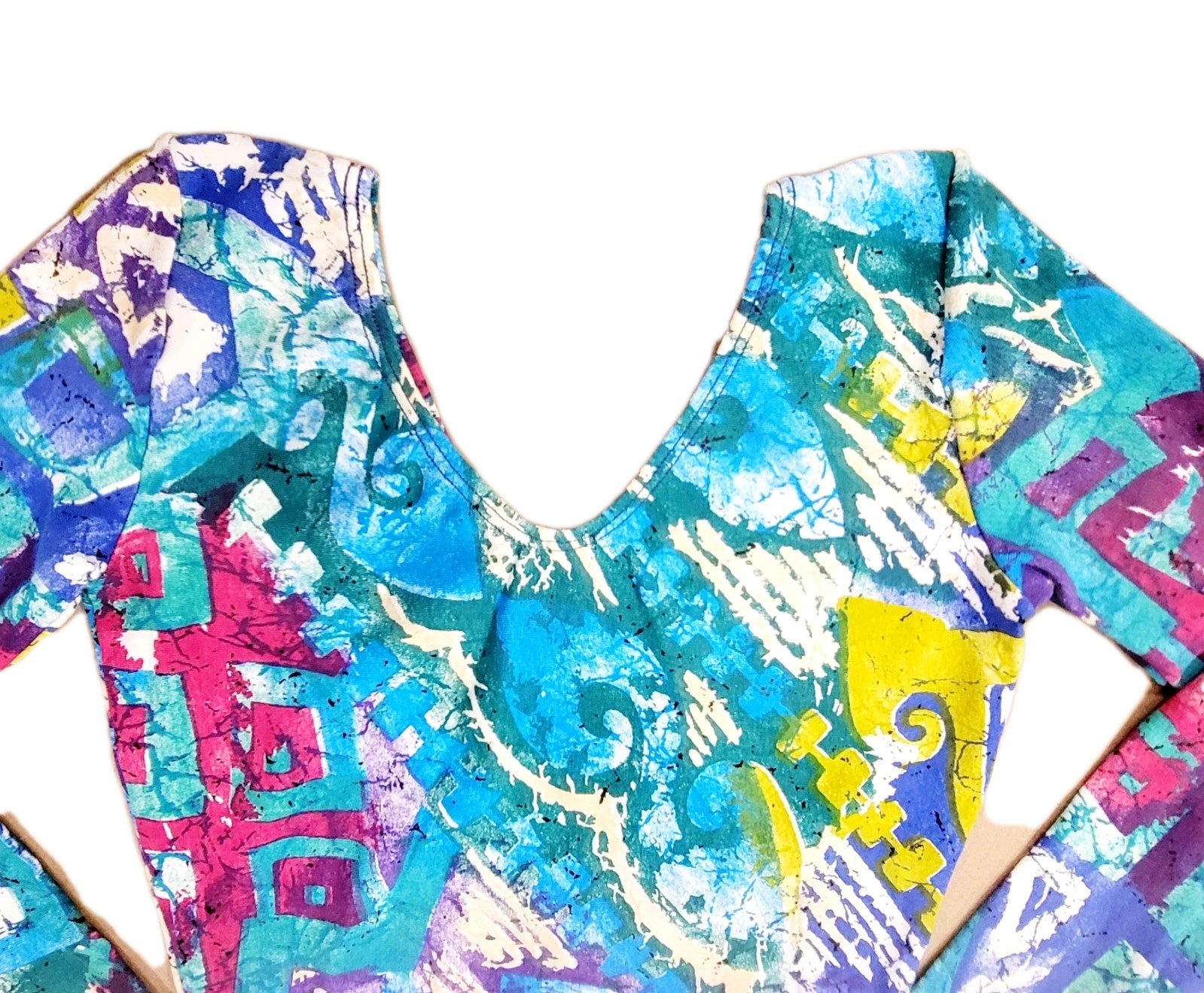 GK Elite VTG 90s Hip Hop Geometric Long Sleeve Cotton Leotard Bodysuit Size AS