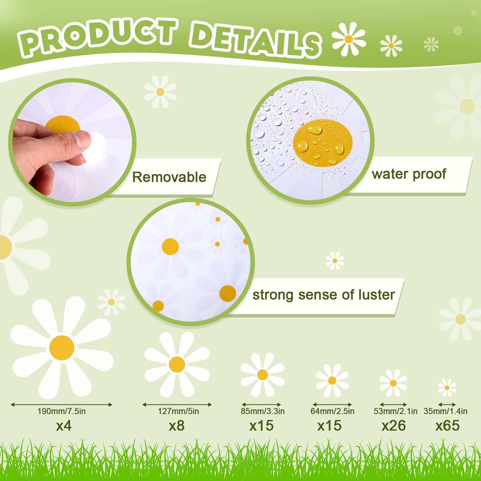 Fuutreo 12 Sheets Daisy Stickers 130 Pcs Flower Car Daisy, Single Color